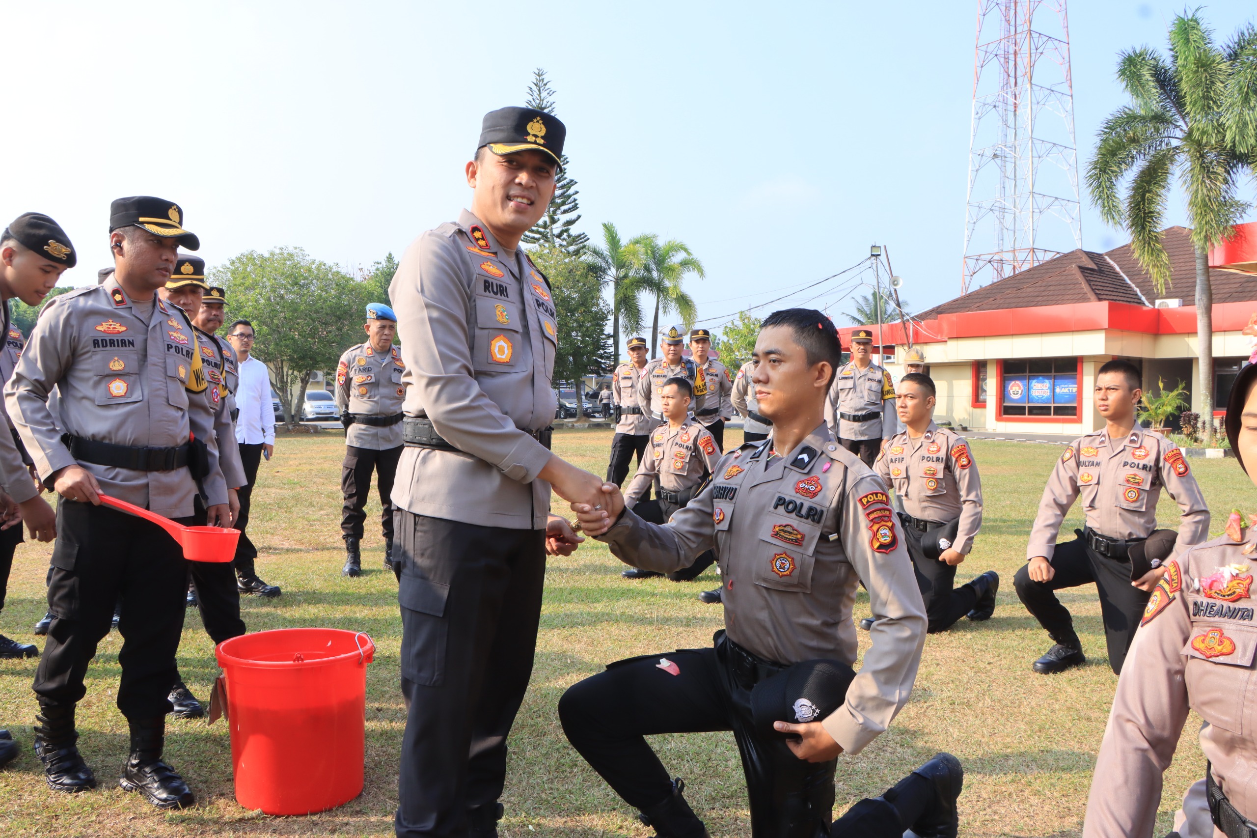 Kemudian kegiatan tersebut ditutup dengan tradisi penyiraman kepada 10 bintara polri tersebut