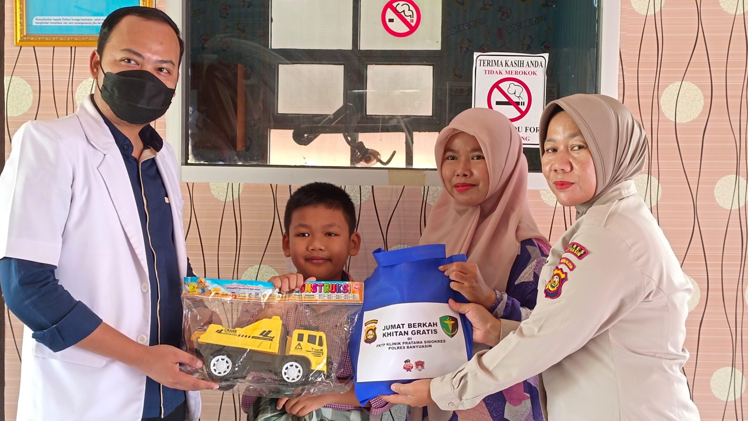 Pelaksanaan khitanan sendiri ditangani langsung oleh dr. Dapid Aryanto, dokter andalan Polres Banyuasin yang telah berpengalaman dalam prosedur medis ini.