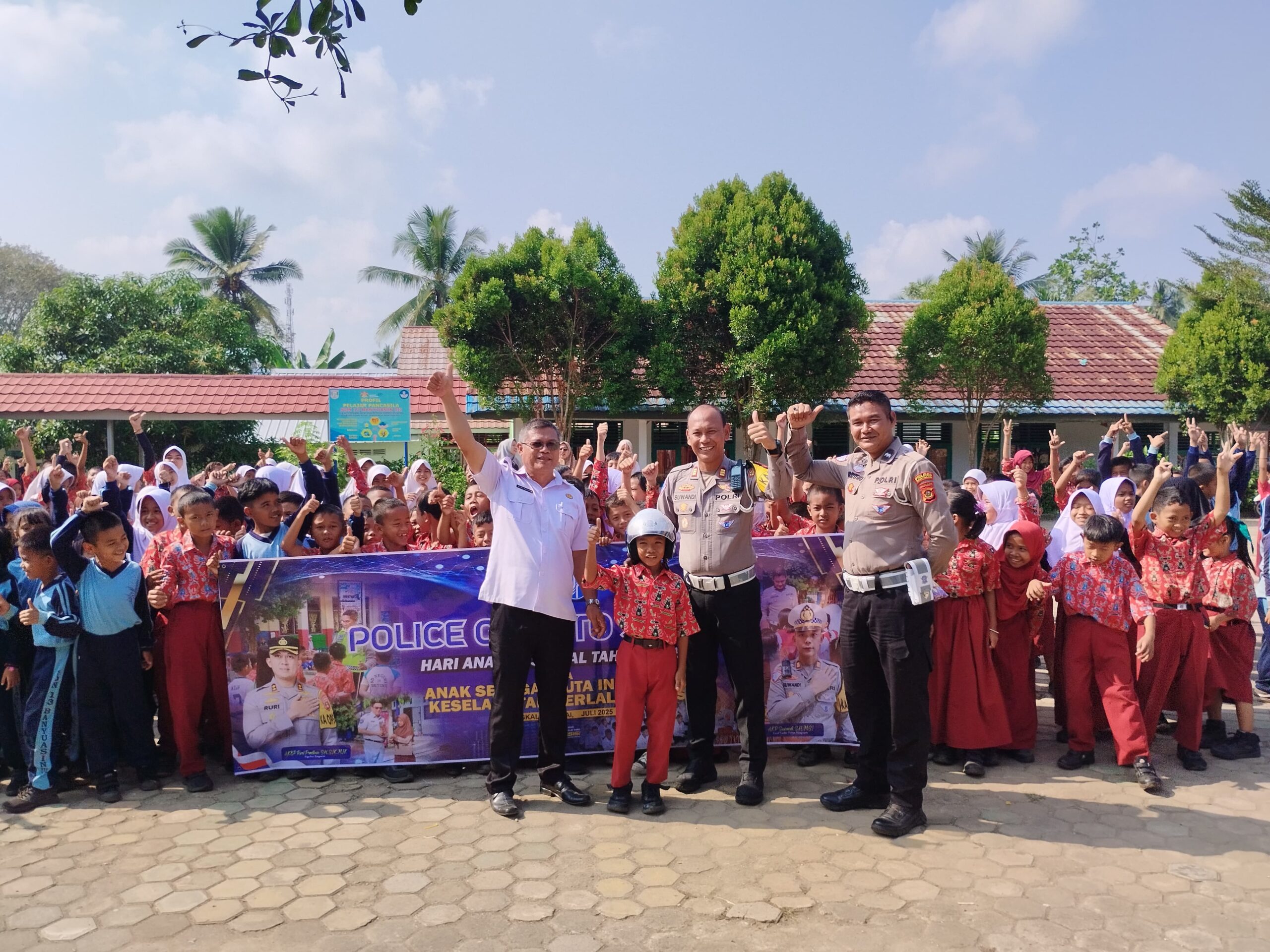 Polres Banyuasin Sambut Hari Anak dengan Sosialisasi Lalu Lintas Ceria di SDN 13