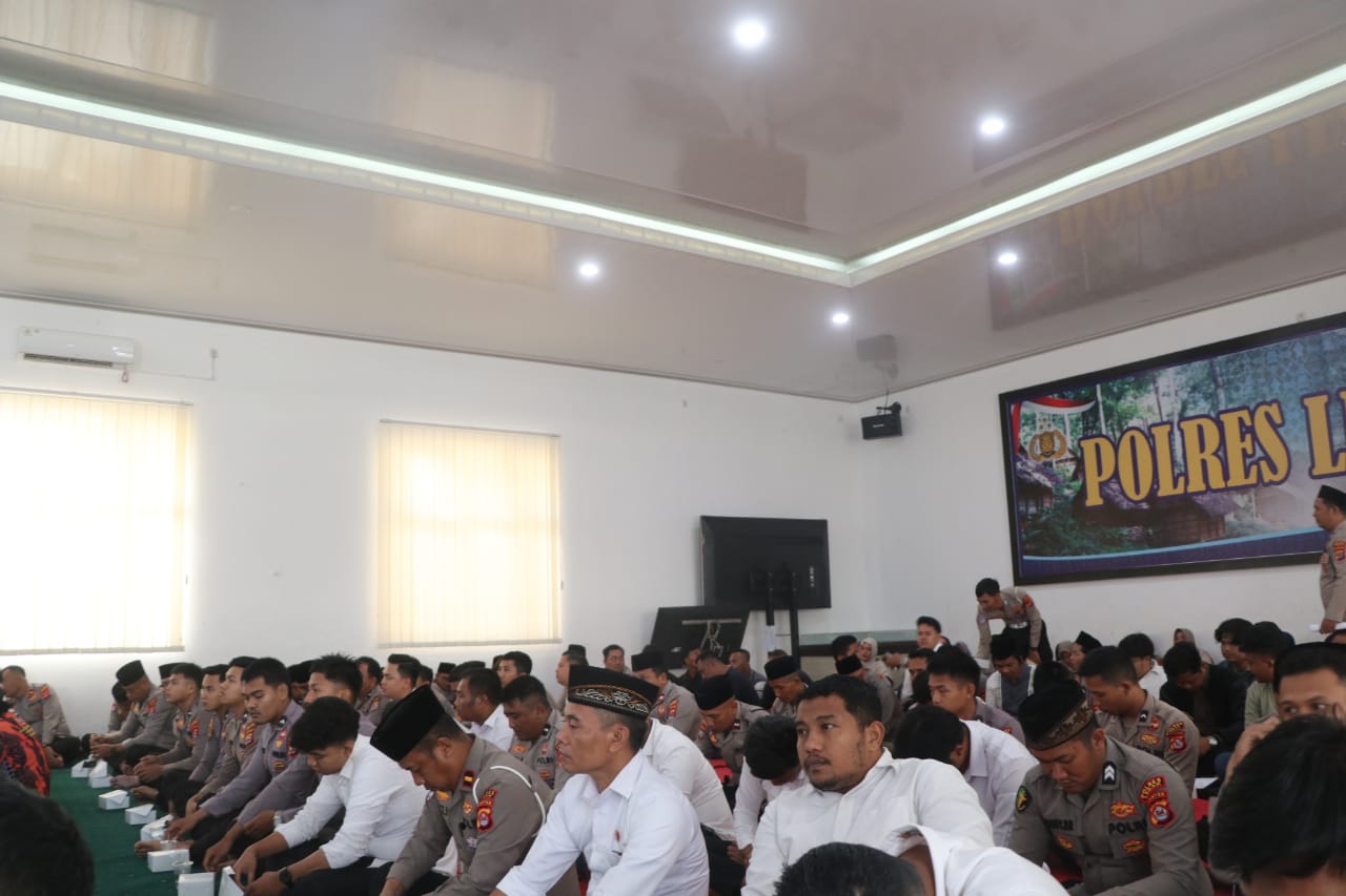 Kegiatan yang dimulai pukul 16.00 WIB tersebut dihadiri langsung oleh Kapolres Lebak AKBP Herfio Zaki, S.I.K., M.H., Wakapolres Lebak Kompol Eddy Prastyo Hermawan, S.E., M.M., Ketua MUI Kabupaten Lebak KH. Pupu Mahpudin, Ketua PCNU Kabupaten Lebak KH. Asep Saefullah, Ketua FSPP Lebak K.H.Ade Bujaeremi, Ketua BKSAG Kabupaten Lebak Pendeta Gideon, Ketua Yayasan Avalokitesara Romo Kiat Koen, para Pejabat Utama Polres Lebak, bintara dan ASN Polres Lebak, serta perwakilan organisasi masyarakat dan OKP mahasiswa.