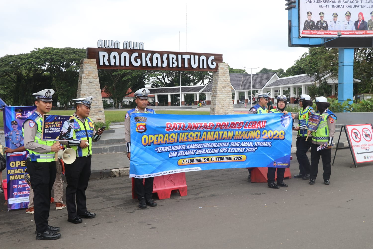 Liputanabn.com | Lebak – Dalam rangka meningkatkan keselamatan berlalu lintas serta menciptakan Kamseltibcarlantas yang aman, nyaman, dan selamat, Polres Lebak Polda Banten menggelar Operasi Keselamatan Maung 2026. Kegiatan hari pertama operasi tersebut dilaksanakan di Alun-alun Rangkasbitung, Kabupaten Lebak, pada Senin (2/2/2026).