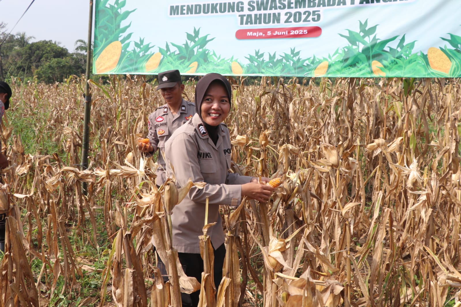 Kapolres Lebak Polda Banten AKBP. Herfio Zaki., SIK., MH yang diwakili oleh Waka Polres Lebak Kompol Edy Prasetyo Hermawan., SE., MM mengatakan Panen Raya jagung di Maja Kab. Lebak dihadiri oleh Penata Kebijakan Kapolri Madya TK III Polda Banten Kombes Pol Widya Andriani, A.Mg,S.E,MM, Dirtahti Polda Banten Eko Widodo, SH, MH, PJU Polres Lebak, Kapolsek Maja Akp Achri Dwi Yunito, S.IK,MH, Kadis Pertanian Kabupaten Lebak Sdr. Rahmat, Camat Maja sdr. Edi Nurhaedi, S.Sos, Ketua Kelompok Tani Sumber Harapan dan Anggotanya.