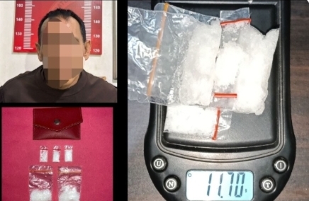 Dalam penangkapan tersebut, petugas menemukan lima paket sabu dengan berat bruto 11,70 gram yang disembunyikan dalam sebuah dompet kecil berwarna merah. Hasil pemeriksaan urine tersangka juga menunjukkan positif narkotika.