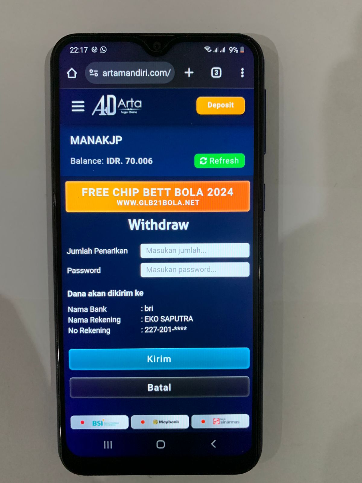 Liputanabn.com | Indralaya Selatan, 13 November 2024 – Tim Reserse Kriminal (Reskrim) Polres Ogan Ilir berhasil mengungkap kasus tindak pidana perjudian jenis togel online di Desa Tebing Gerinting Selatan, Kecamatan Indralaya Selatan, Kabupaten Ogan Ilir. Pelaku, Eko Saputra (28), ditangkap saat melakukan aktivitas perjudian menggunakan telepon genggam miliknya.