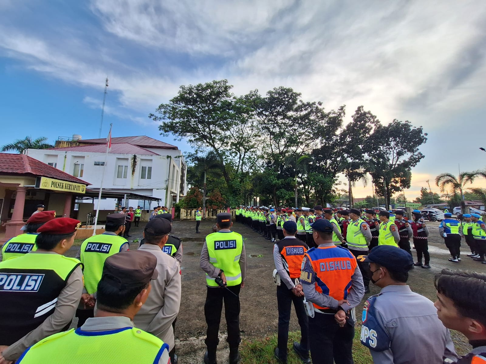 “Saya minta seluruh personel melaksanakan tugas dengan ikhlas dan penuh rasa tanggung jawab. Pastikan semua titik pengamanan berjalan sesuai ploting dan jangan sampai ada gangguan dalam pelaksanaan kegiatan,” tegas Kapolres.
