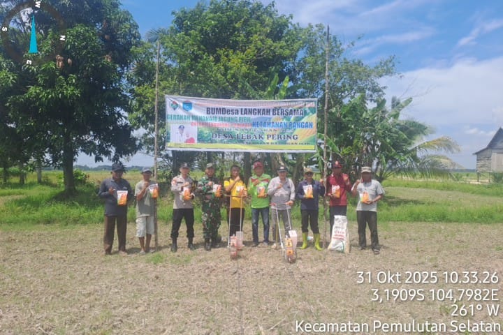 Liputanabn.com | Pemulutan Selatan, 31 Oktober 2025 – Dalam rangka mendukung program pemerintah terkait ketahanan pangan nasional, Polsek Pemulutan Polres Ogan Ilir bersama unsur Forkopimcam melaksanakan kegiatan penanaman jagung di Desa Lebak Pering, Kecamatan Pemulutan Selatan, Kabupaten Ogan Ilir, Jumat (31/10/2025) pukul 09.30 WIB.