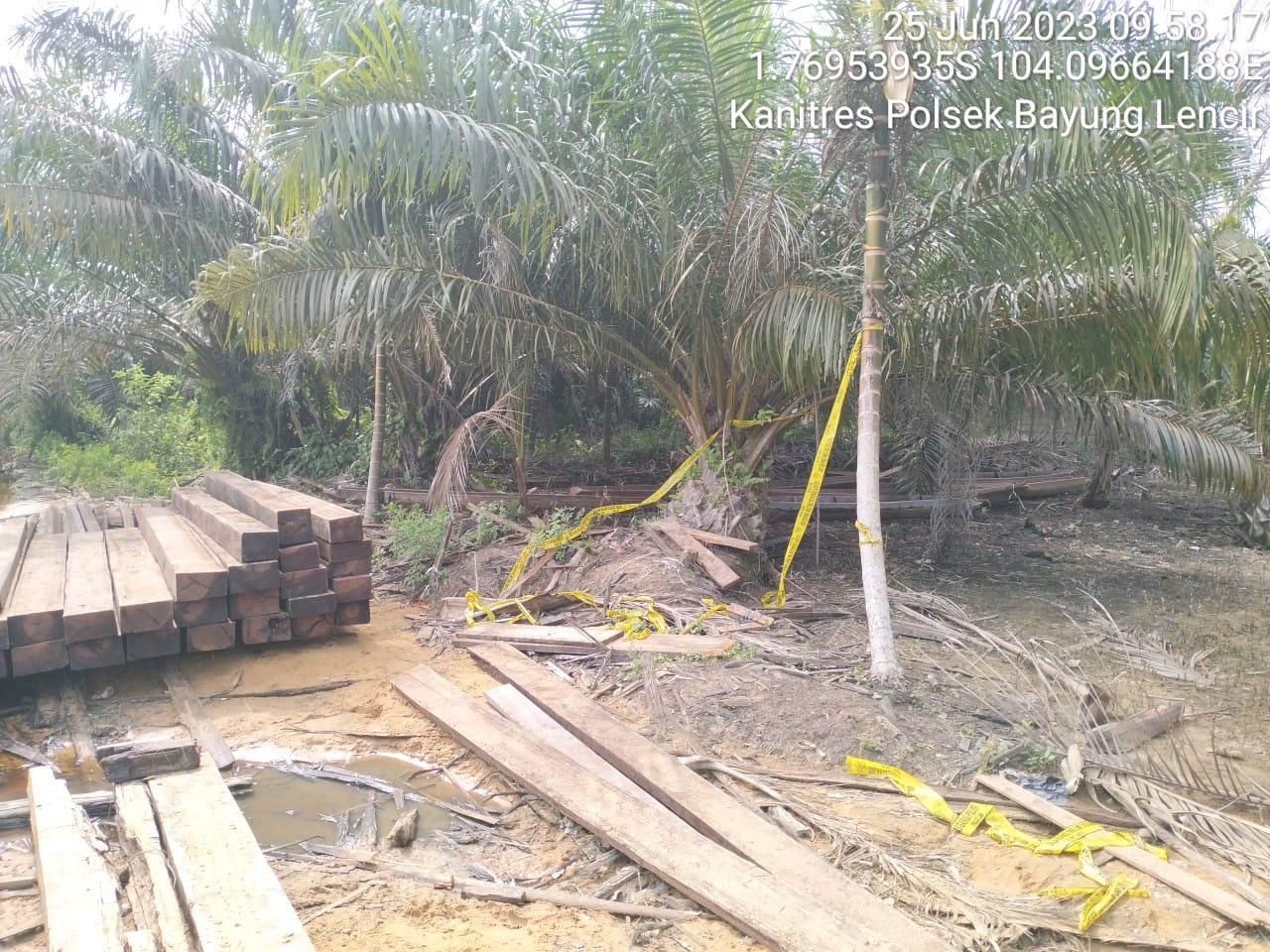 Telah tertangkap tangan dua orang berasal dari Kec. Pangkalan Lampam Kab. OKI berinisial A (42) dan JM (31) terkait melakukan tindak pidana memuat, mengeluarkan, mengangkut kayu olahan dari kawasan hutan produksi oleh personil Polsek Bayung Lencir Polres Muba, Polda Sumsel, Sabtu (24/06/2023).