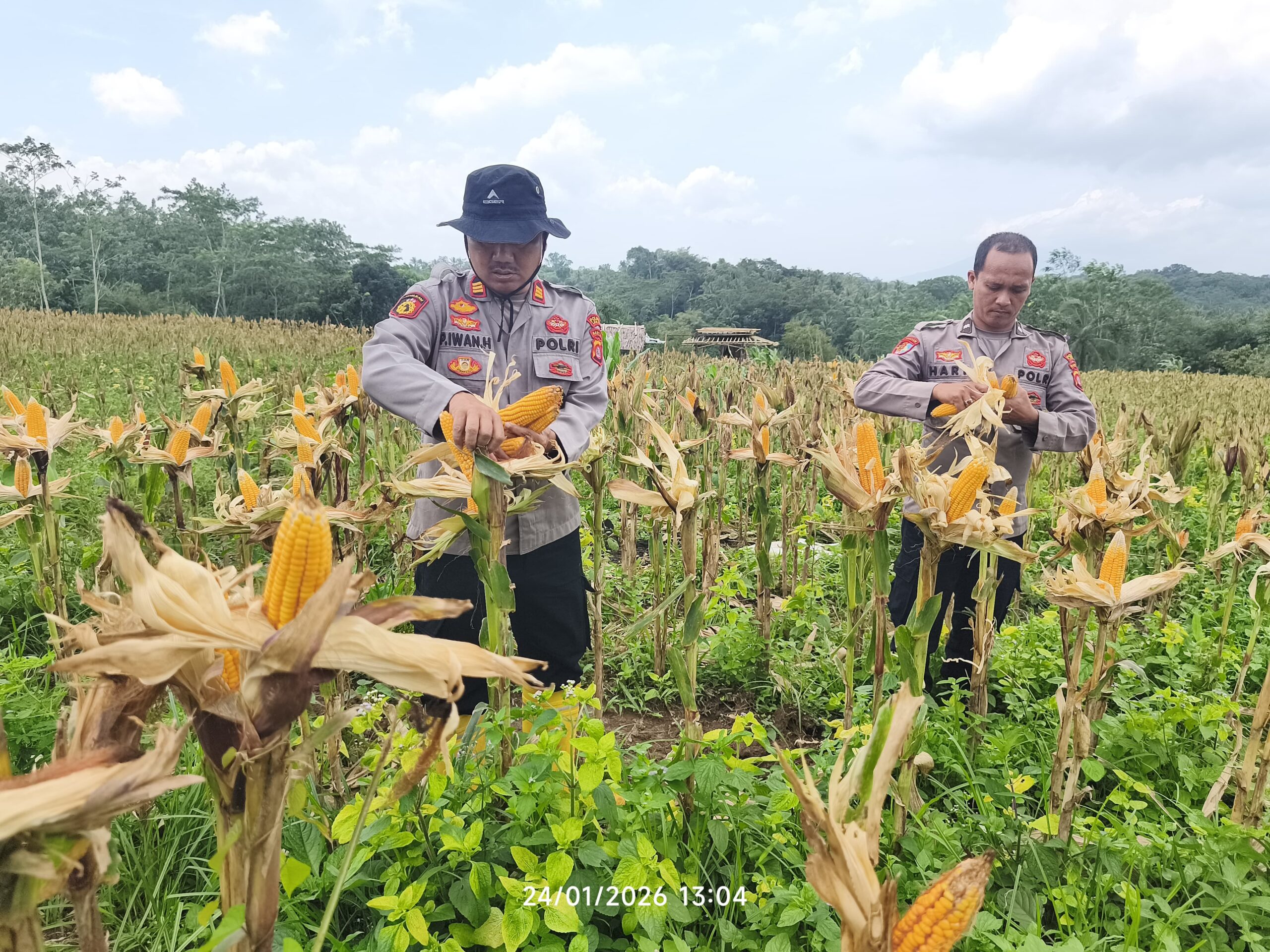 Liputanabn.com | Lebak, Dalam rangka bentuk dukungan terhadap program Asta Cita Bapak Presiden Republik Indonesia H. Prabowo Subianto yakni ketahanan pangan nasional, Polsek Cimarga Polres Lebak bersama Petani menggelar panen raya jagung hibrida di kampung Cikapek desa Sarageni kecamatan Cimarga, Kabupaten Lebak. Sabtu (24/1/2026).