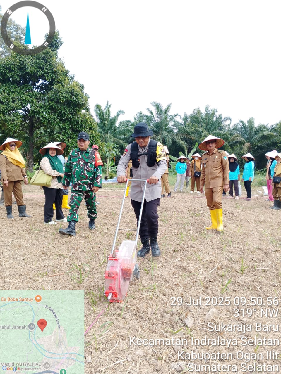 Kegiatan ini merupakan kerja sama antara Polsek Indralaya, Pemerintah Desa Sukaraja Baru, serta penyuluh pertanian setempat. Penanaman dilakukan di atas lahan seluas satu hektare dengan menggunakan bibit jagung sebanyak 25 kilogram. Lokasi penanaman berada di titik koordinat -3.2968840, 104.7116040.
