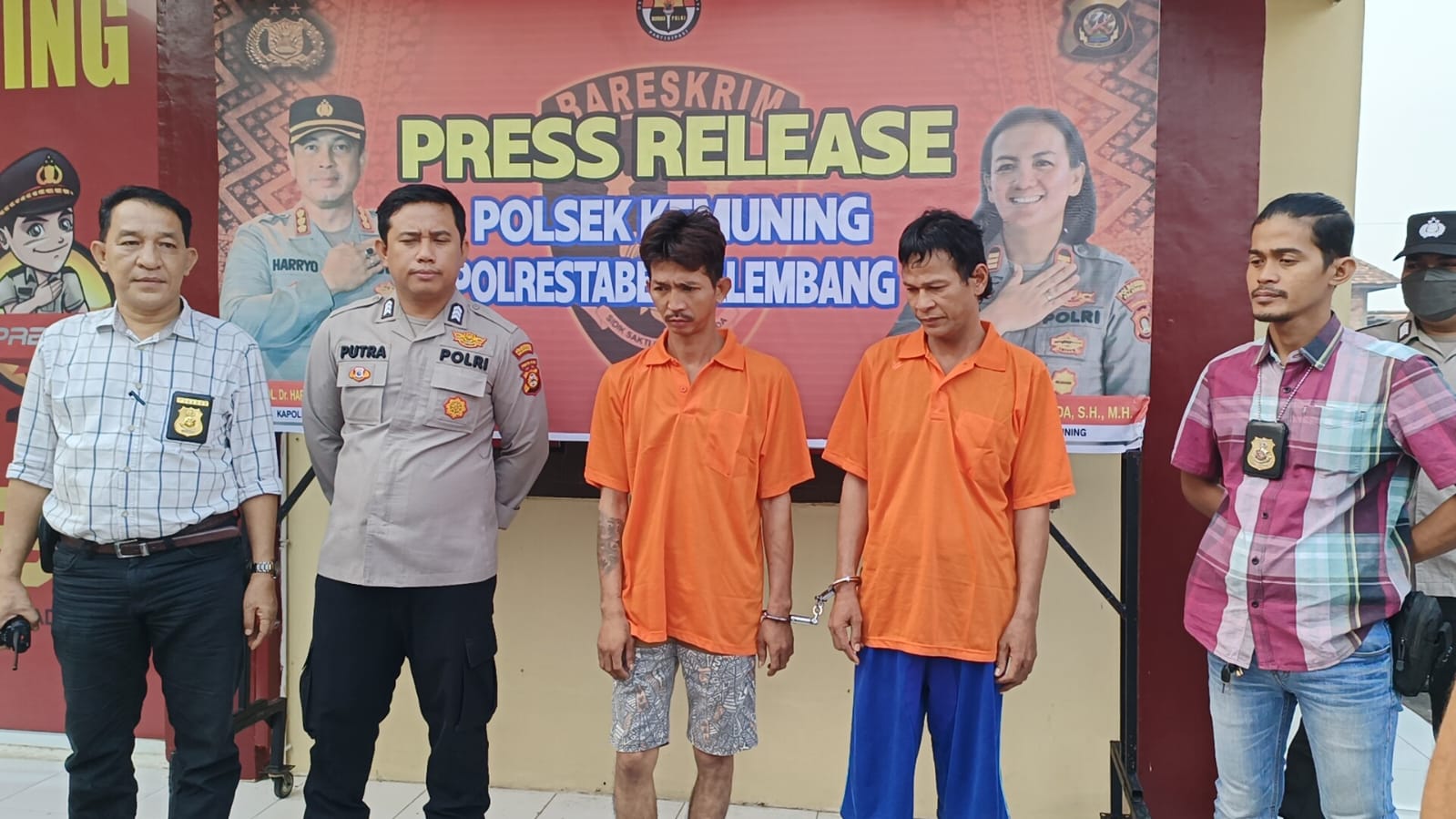 Liputanabn.com | Palembang – Press realese yang di gelar di Polsek Kemuning Palembang, Jum’at (29/09/23) dipimpin langsung Kapolrestabes Palembang Kombes Pol. Dr. Harryo Sugihhartono S.I.K MH, didampingi Kapolsek Kemuning AKP. Nora Marlinda SH., MH, dengan menghadirikan kedua tersangka.