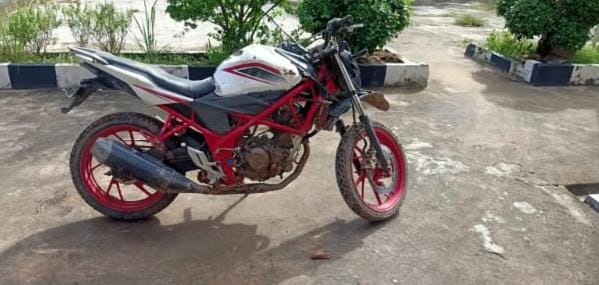 1buah dompet warna Hijau, 1 buah celana jeans warna biru, 1 unit SPM Honda CBR.150, dan 1 buah skop dari pipet plastik warna bening,”tandasnya.