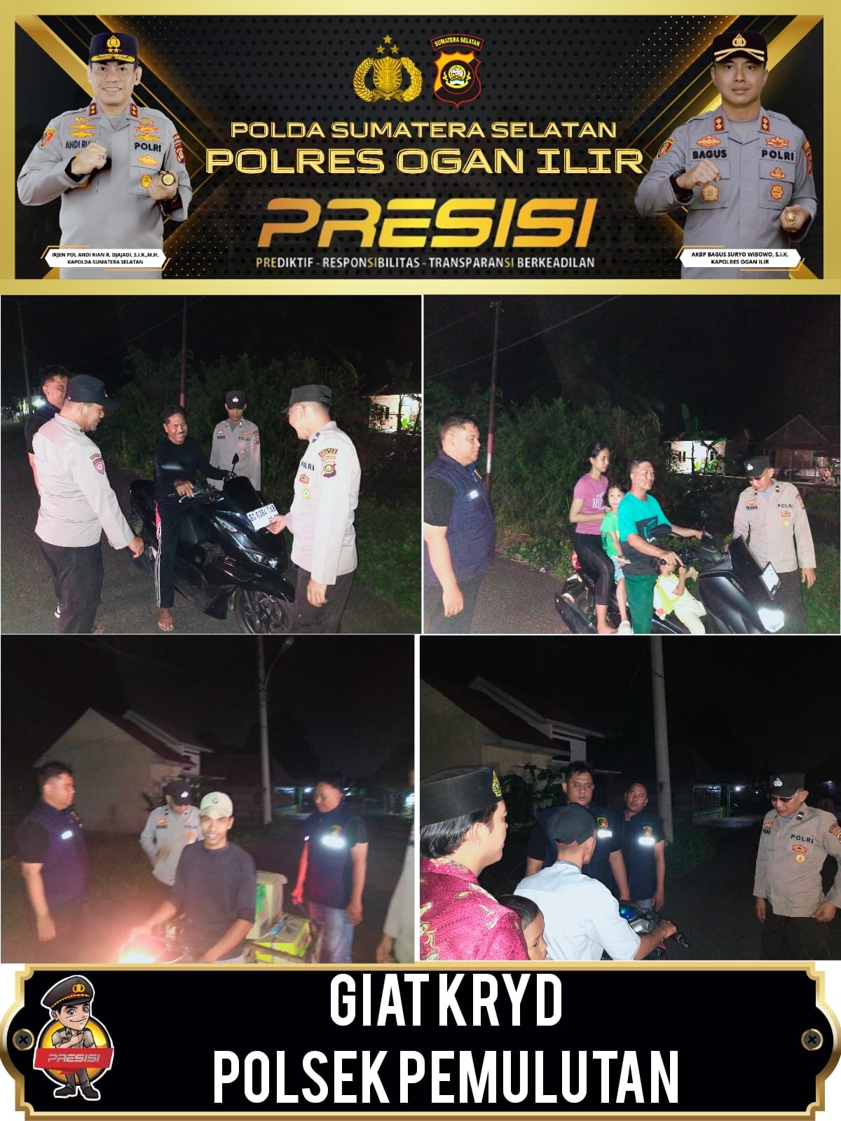 Polsek Pemulutan Kabupaten Ogan Ilir Gelar KRYD untuk Cegah Tindak Pidana 3C dan Kejahatan Jalanan