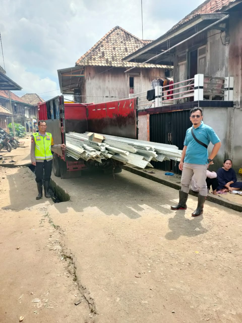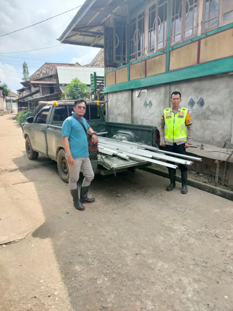 Pelangsiran material tower 159 dari tempat pengepokan H Zainal ke dermaga di Desa Paldas Kecamatan Rantau Bayur dengan menggunakan mobil dinas TNI dan Cold diesel, di dermaga pelangsiran dilakukan oleh Anggota TNI Koramil Pangkalan Balai dengan menggunakan perahu ketek.