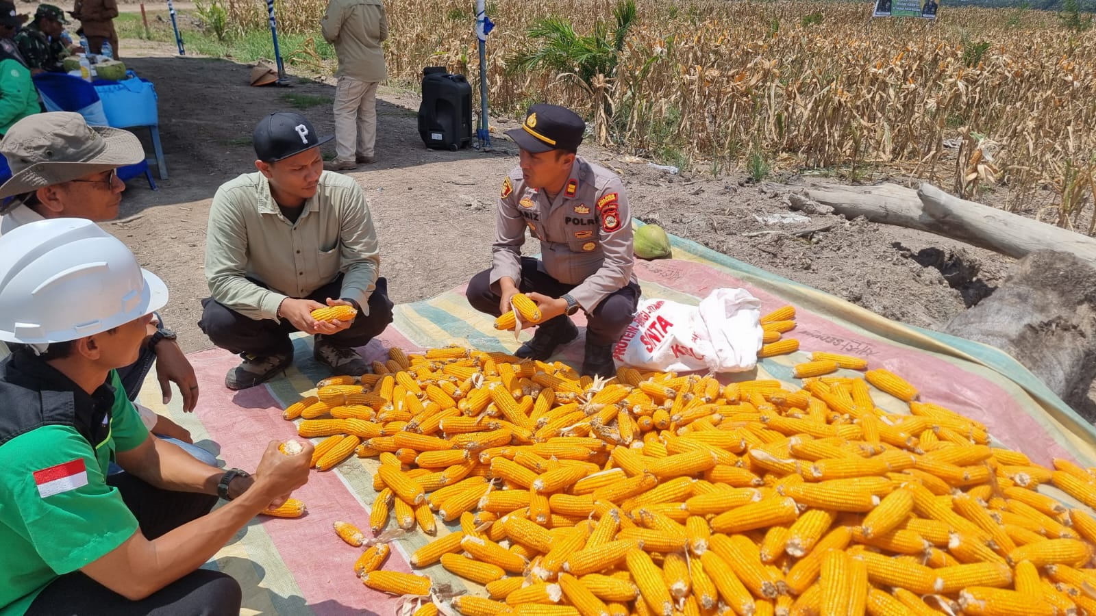Jagung yang dipanen berasal dari lahan seluas 7 Hektar yang dikelola dengan sistem tumpang sari. Hasil panen perdana ini diperkirakan mencapai 28 ton