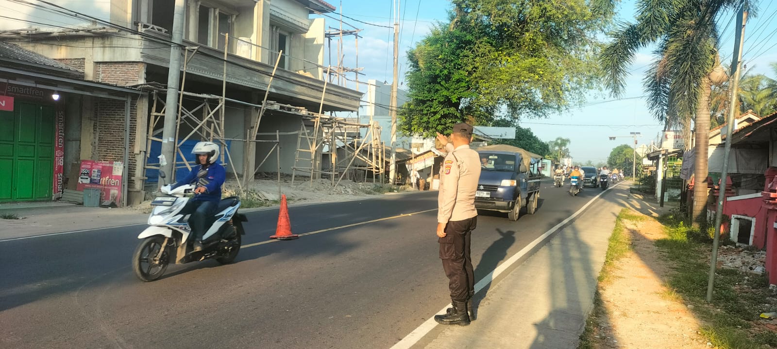 Polsek Warung Gunung Polres Lebak Laksanakan Strong Point Pagi Hari Antisipasi terjadinya kemacetan dan Lakalantas.