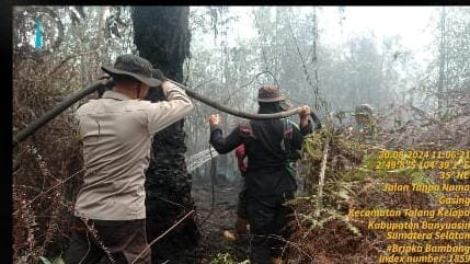 Kapolres Banyuasin AKBP Ruri Prastowo SH SIK MIK melalui Kasi Humas Polres Banyuasin AKP Sutedjo mengatakan, menindaklanjuti dari informasi tersebut, Posko terpadu 05 Banyu Urip Tanjung Lago langsung turun ke lokasi untuk melakukan pemadaman.