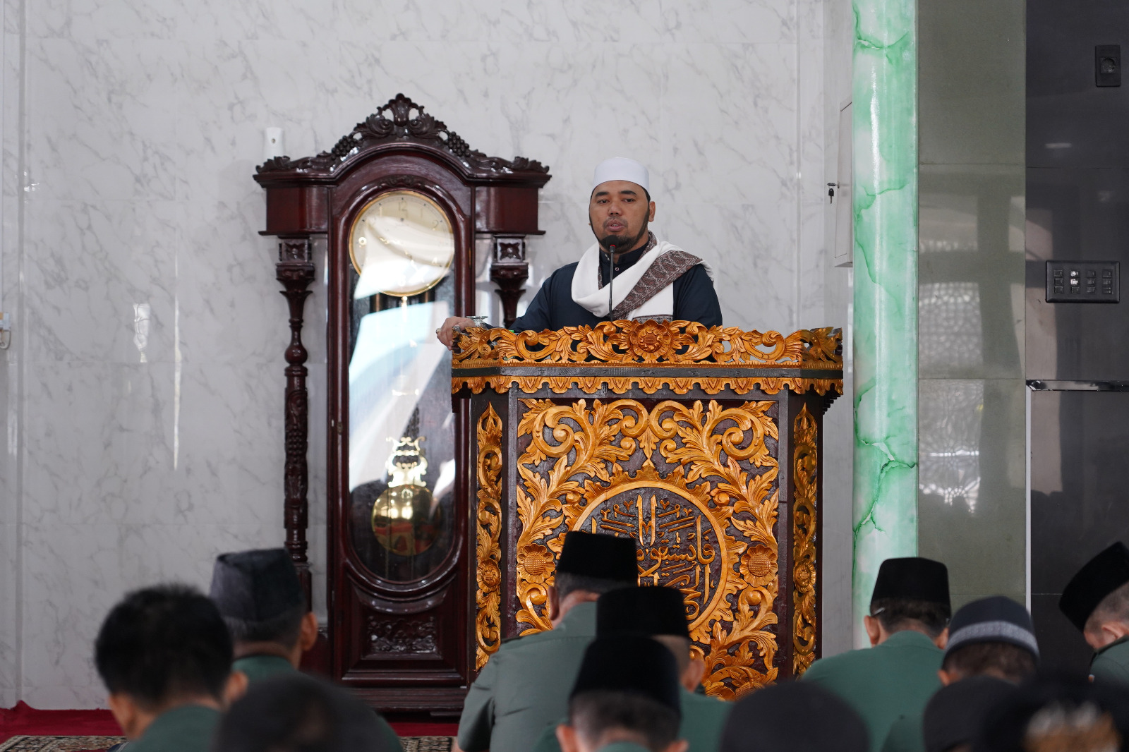 “Keluar dari majelis ini atau dari masjid ini bukan hanya diperoleh sekedar kata-kata yang kita dengarkan tapi aplikasi yang harus kita terapkan di dalam kehidupan kita sehari-hari”, ujar Ustadz Bagus.