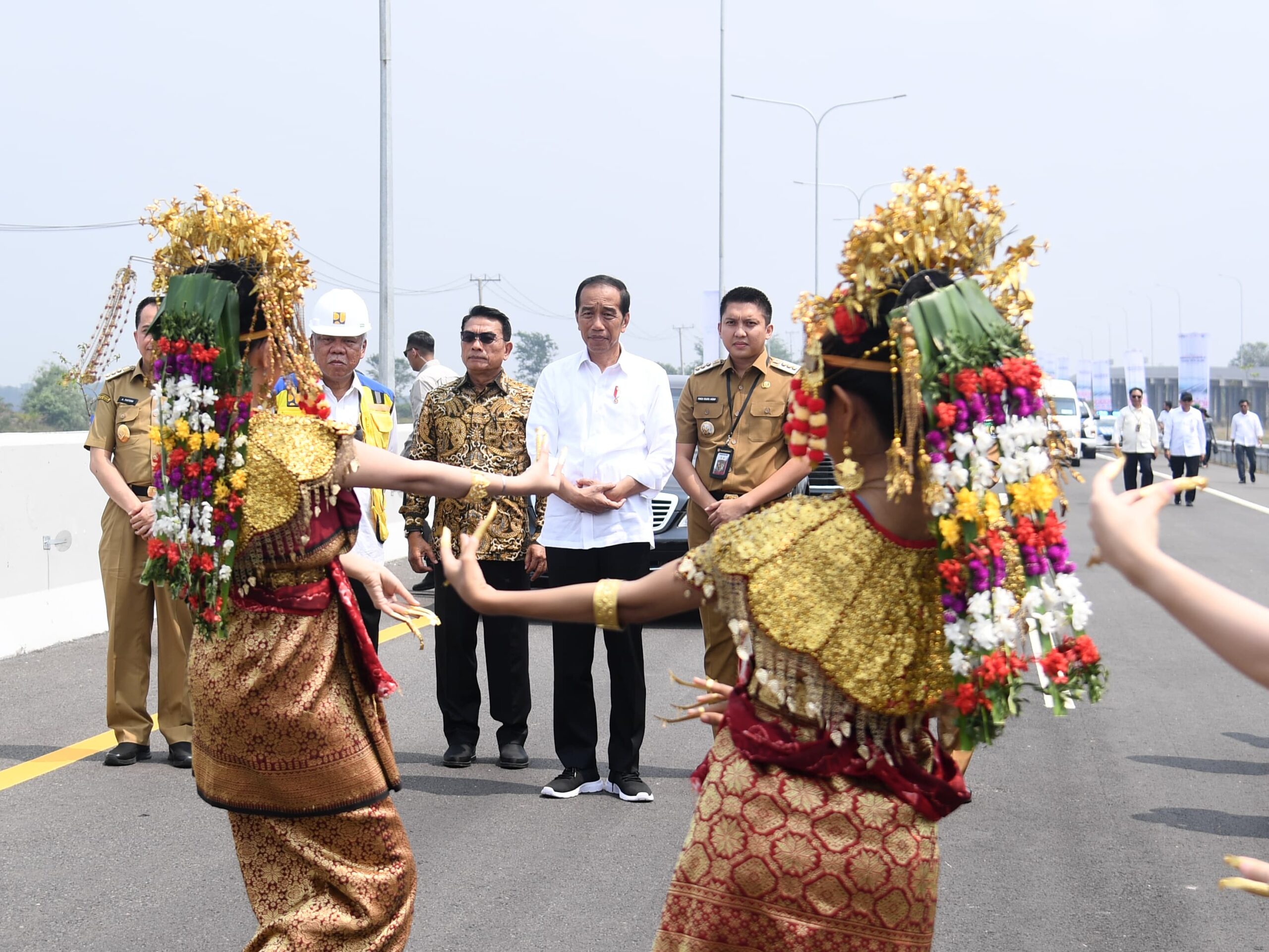 “Pada hari ini alhamdulillah Jalan Tol Indralaya-Prabumulih sepanjang 64,5 km telah selesai dan segera dioperasikan,” ujar Presiden dalam sambutannya.