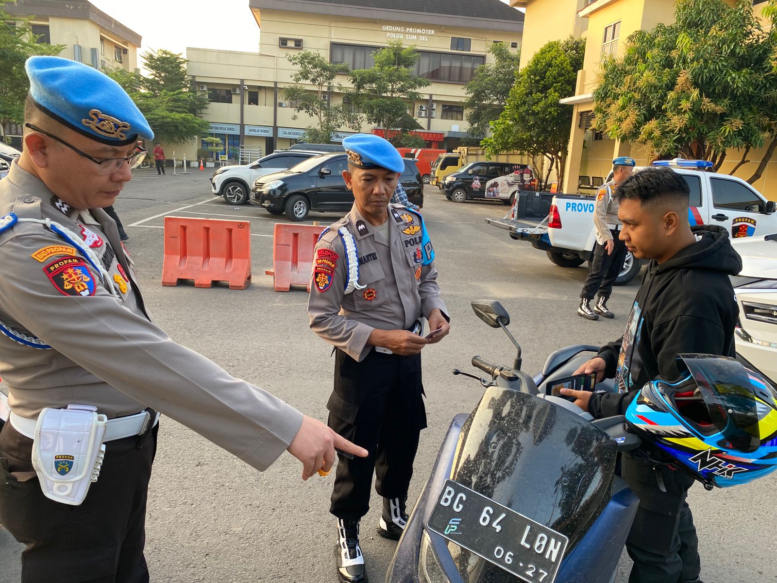 Membawa kendaraan R4 kedalam Mapolda sumsel = 3 Pers
