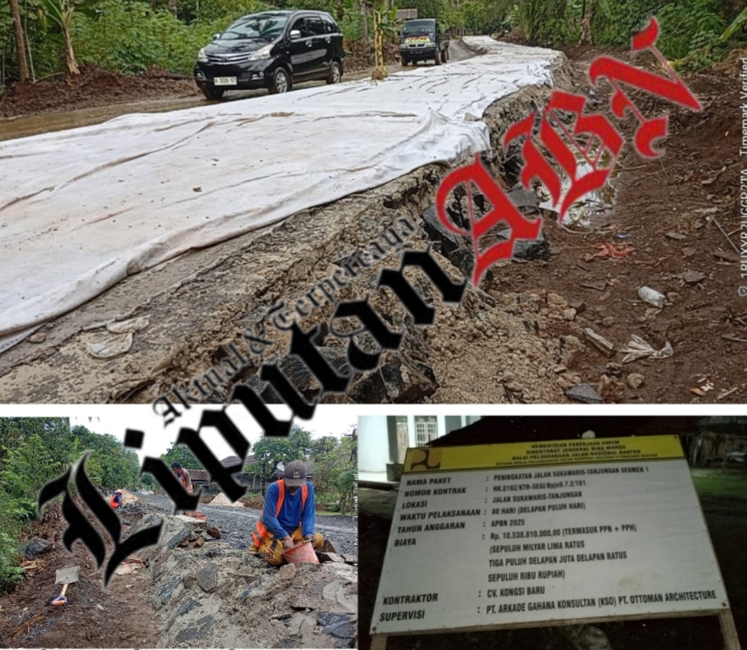 Liputanabn.com | Pandeglang, 18 November 2025 – Proyek peningkatan Jalan Sukawaris-Tanjungan, Sekmen 1, yang dibiayai melalui Anggaran Pendapatan dan Belanja Negara (APBN) tahun 2025 dengan total anggaran Rp 10.538.810.000,00, kini menjadi sorotan masyarakat setempat. Proyek ini dijadwalkan rampung dalam waktu 80 hari kalender, namun warga mencurigai bahwa pelaksanaannya tidak sesuai dengan Rencana Anggaran Biaya (RAB).