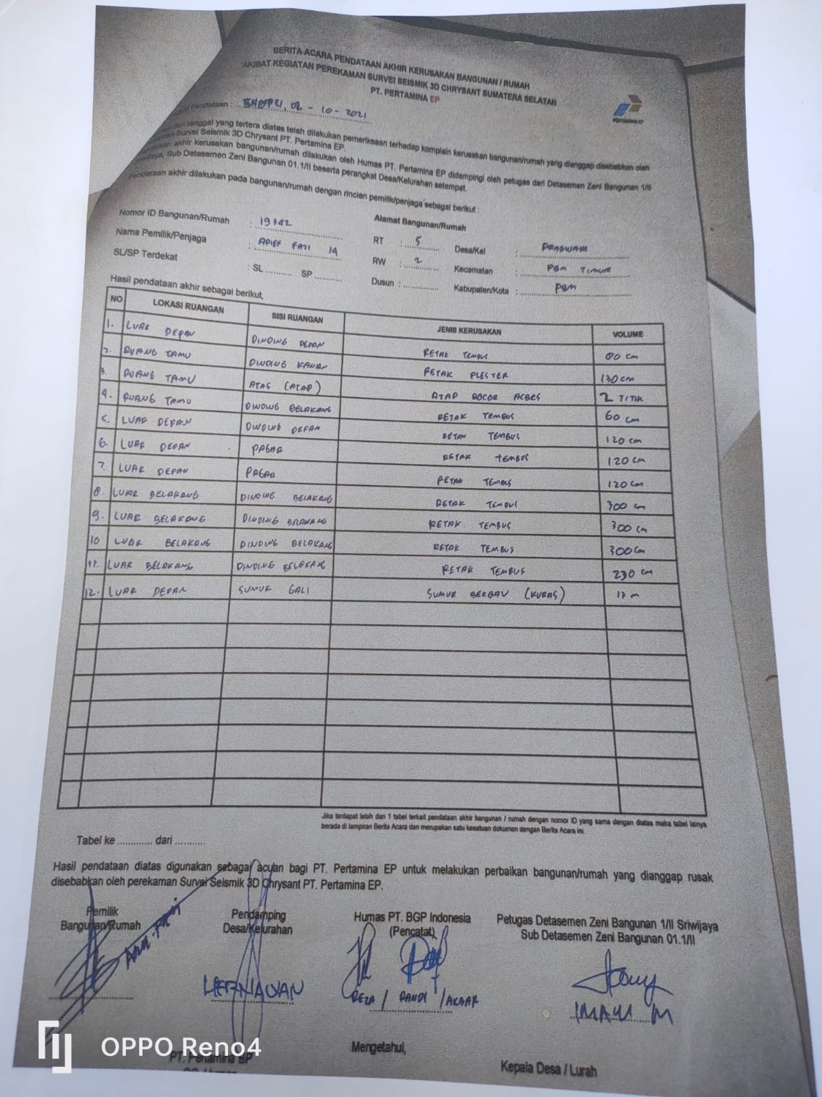 Masih kata dia, saya punya bukti bahwa rumah saya retak di karenakan peledakan sismik 3D, saya akan terus menuntut ,sampai tuntutan saya di kabulkan, saya berharap, dan saya menaruh harapan besar kepada negara ini, terkhusus Menteri BUMN dan pihak Pihak terkait baik PT Pertamina pusat, maupun PT Pertamina Zona 4 Kota Prabumulih Sumatera Selatan, agar permasalahan saya selesai dan saya tidak di rugikan, saya akan selalu berusaha untuk memperjuangkan hak hak saya sebagai warga negara,tutupnya.