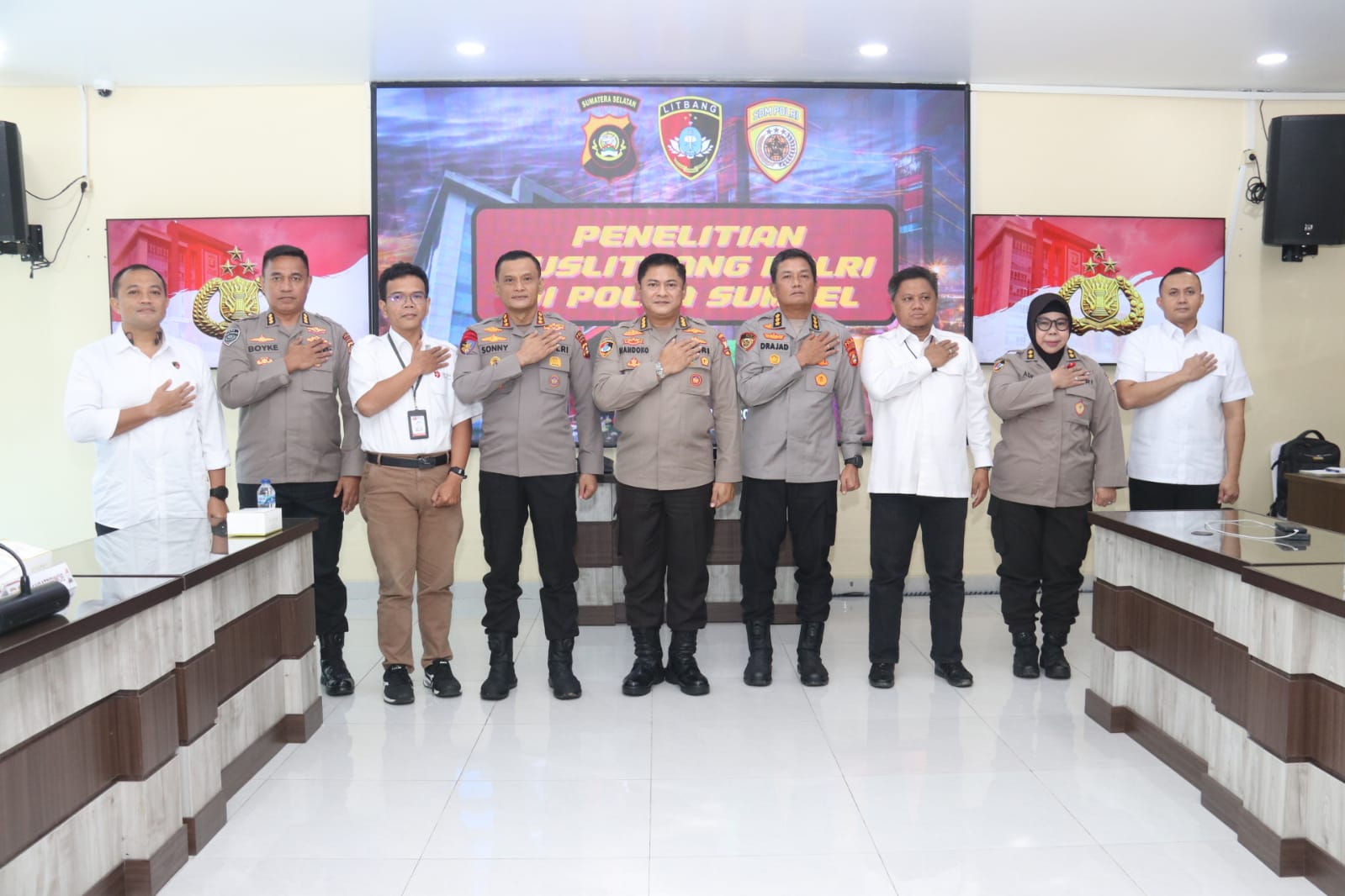 Liputanabn.com | Palembang , – Puslitbang Polri menggelar kegiatan penelitian dan pengkajian bertajuk “Strategi Pemberdayaan SDM Polri Guna Mendukung Penerapan Sistem Elektronik Manajemen Penyidikan (e-MP) dalam rangka upaya penegakan hukum” dan “Peran Polri dalam Mendukung Program Ketahanan Pangan Nasional Ditengah ancaman krisis Pangan global ” di Polda Sumsel Kegiatan dilaksanakan di ruang Vidcon Lantai II Gedung Utama Presisi Mapolda Sumsel pada Senin pagi (04/8/25). Kegiatan ini dipimpin oleh Ketua Tim Puslitbang Polri, Kombes Pol A. Widihandoko, S.H., M.H. dan didampingi perwakilan dari BRIN Bintang Dwitya C,S,E, M.S.E serta Tim Peneliti Puslitbang Polri.