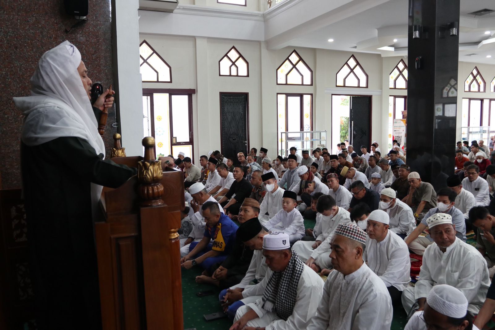 Sholat idul fitri dimasjid Assaadah diimami sekaligus khotib Habib Ali Karor bin Muhammad Alhaddad
