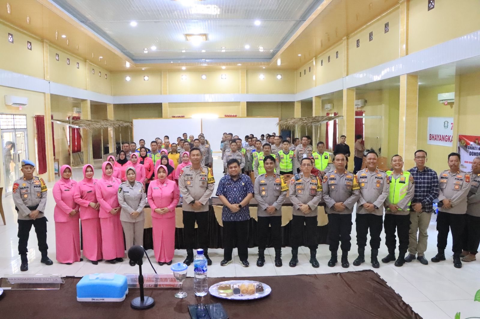 Liptanabn.com | KAPOLRES BANYUASIN AKBP FERLY ROSA PUTRA SIK, Polres Banyuasin – Dalam rangka menyambut peringatan Hari Bhayangkara yang ke- 78 Tahun 2024, Polres Banyuasin Polda Sumsel menggelar Bakti Kesehatan Kegiatan Donor Darah di Aula Sanika Satyawada Polres Banyuasin, Kamis (13/6)