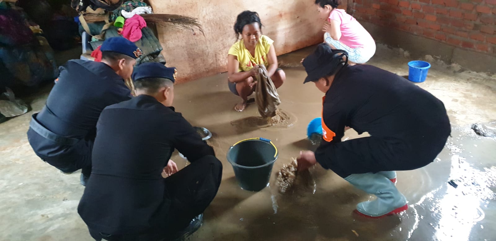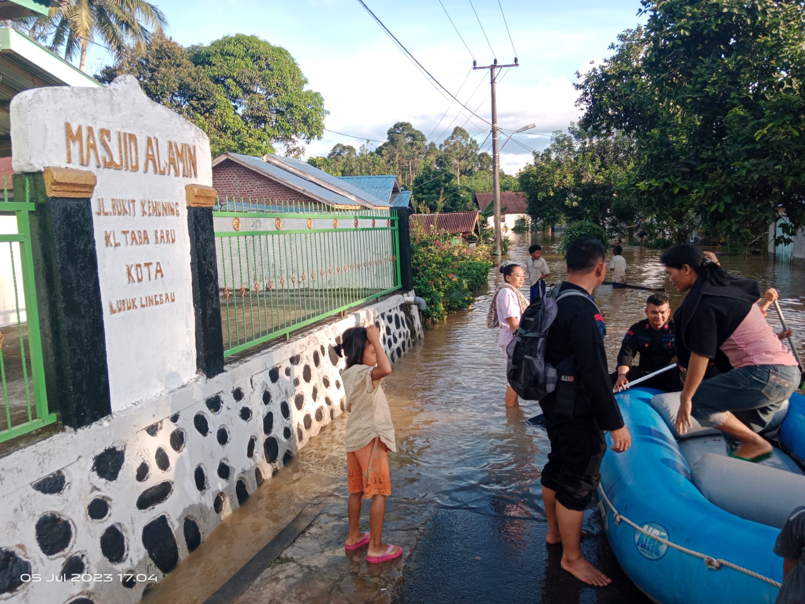 Danyon B Pelopor Satbrimob Polda Sumsel AKBP. ANDIYANO, S.K.M. pimpin 36 Personilnya bersama dengan Dinas Pemadam Kebakaran dan Badan Penanggulangan Bencana Daerah (BPBD) Kota Lubuklinggau melaksanakan Evakuasi warga yang rumahnya Terendam Banjir di Kelurahan Belalau II dan Kelurahan Taba Baru Kota Lubuklinggau.