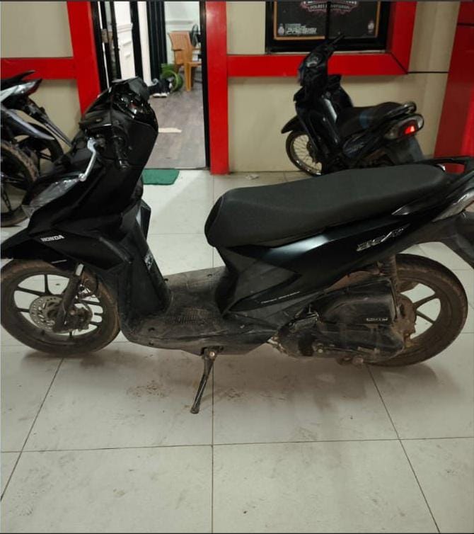 Dari tangan pelaku, polisi menyita barang bukti berupa 1 unit sepeda motor Honda Beat yang dicuri, 1 buah kunci roda, dan 1 buah besi lurus berujung pipih atau biasa disebut “kunci T” yang diduga digunakan untuk membobol kunci motor. Diduga, motif pelaku melakukan tindak pidana ini adalah faktor ekonomi. Pelaku merupakan pengangguran.