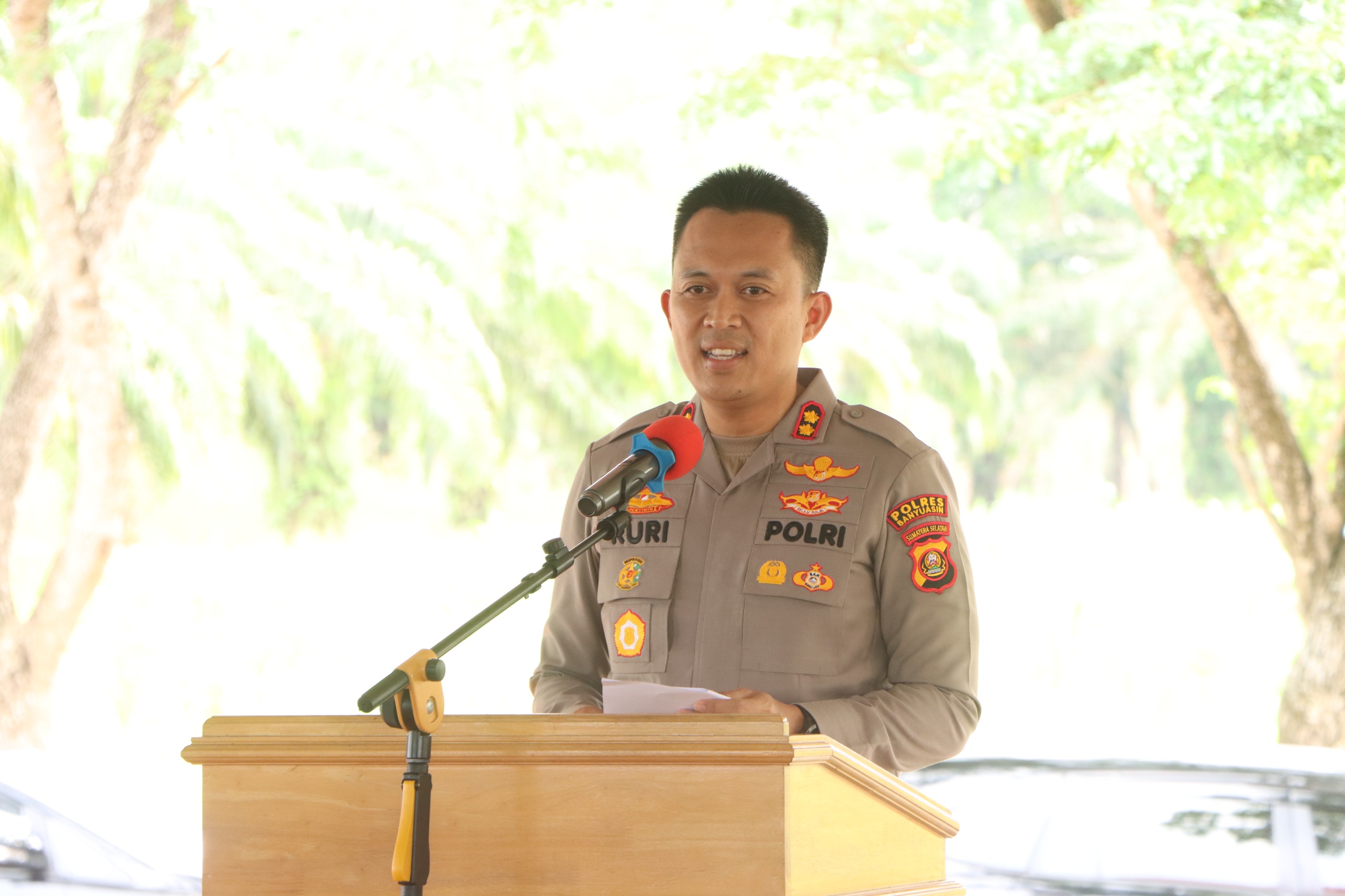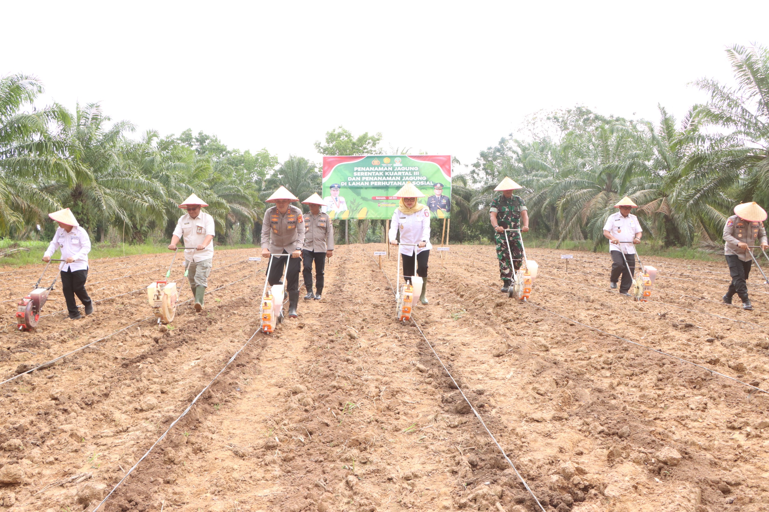 “Hari ini, Polres Banyuasin beserta Forkopimda yang diwakili Ibu Wakil Bupati, melaksanakan penanaman jagung kuartal ketiga serentak seluruh Indonesia yang terpusat di Grobogan, Jawa Tengah. Kita juga melaksanakan penanaman bibit jagung di SMK PP Sembawa seluas kurang lebih tiga hektar,” ujar AKBP Ruri Prastowo selaku Kapolres Banyuasin. Kapolres juga menambahkan bahwa penanaman hari ini menggunakan bibit jagung unggul jenis Bisi 18.