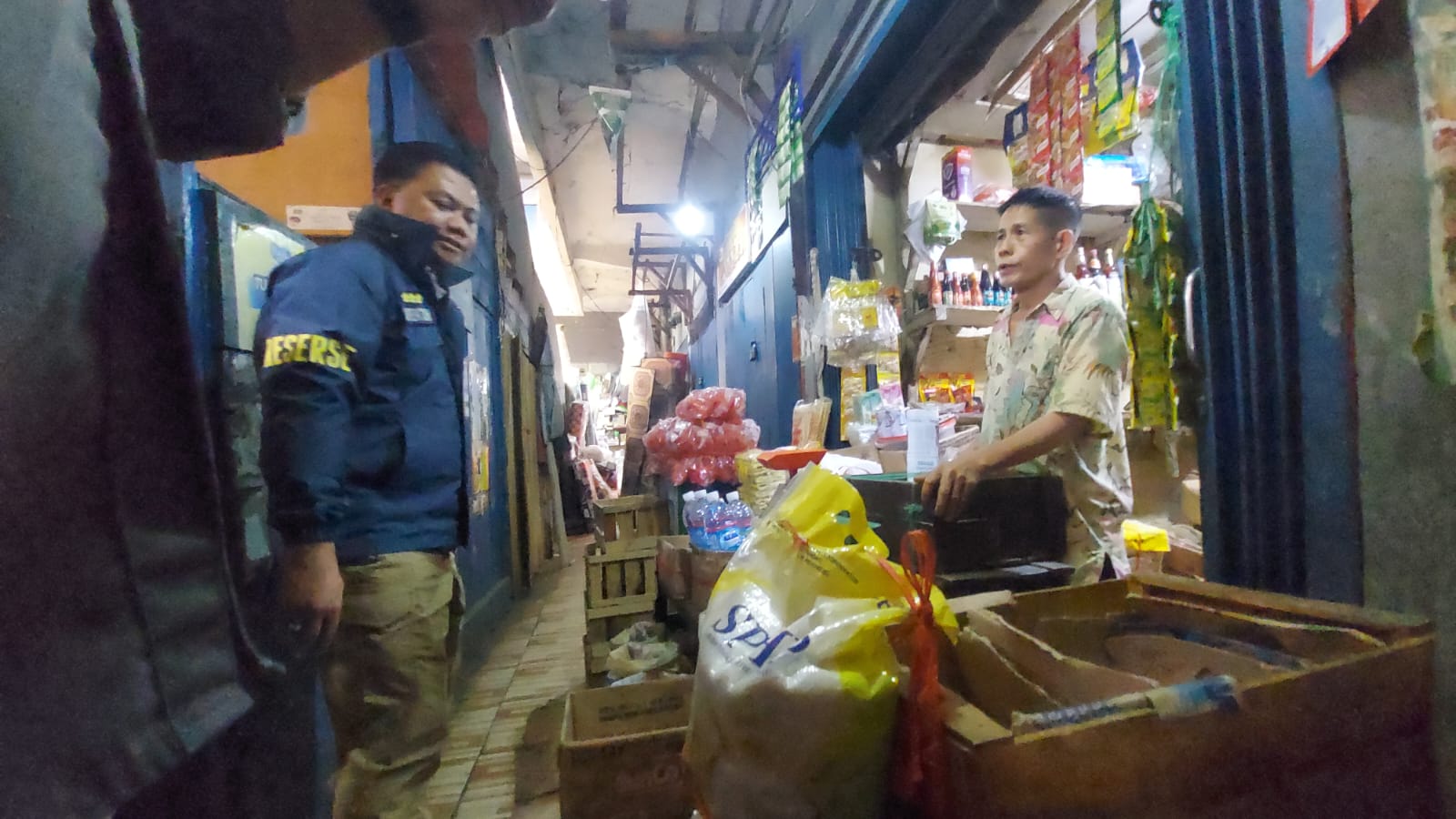 ‎Cukup lama penyidik berdiskusi dengan pedagang sembako di Pasar Tradisional Palimo, pedagang menjamin ketersediaan beras SPHP kedepannya.