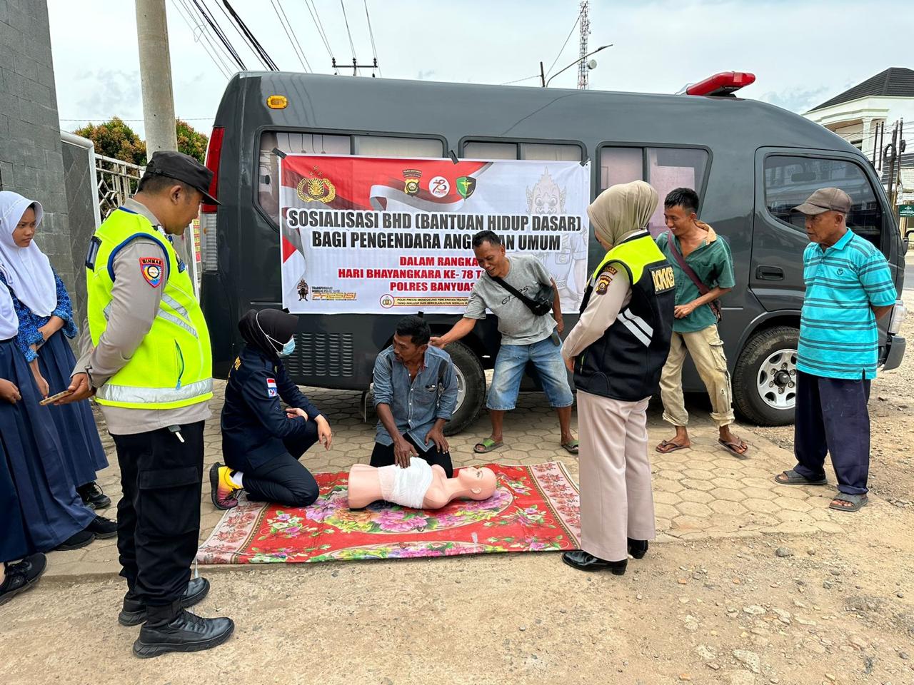 Sidokkes Polres Banyuasin Memberikan Pelayanan Bantuan Hidup Dasar Kepada Pengemudi Angkutan Umum