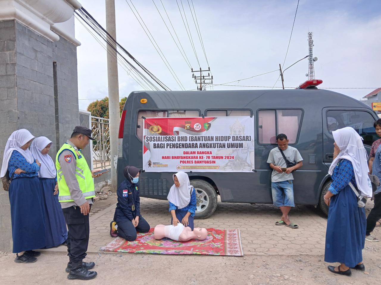Sidokkes Polres Banyuasin Memberikan Pelayanan Bantuan Hidup Dasar Kepada Pengemudi Angkutan Umum