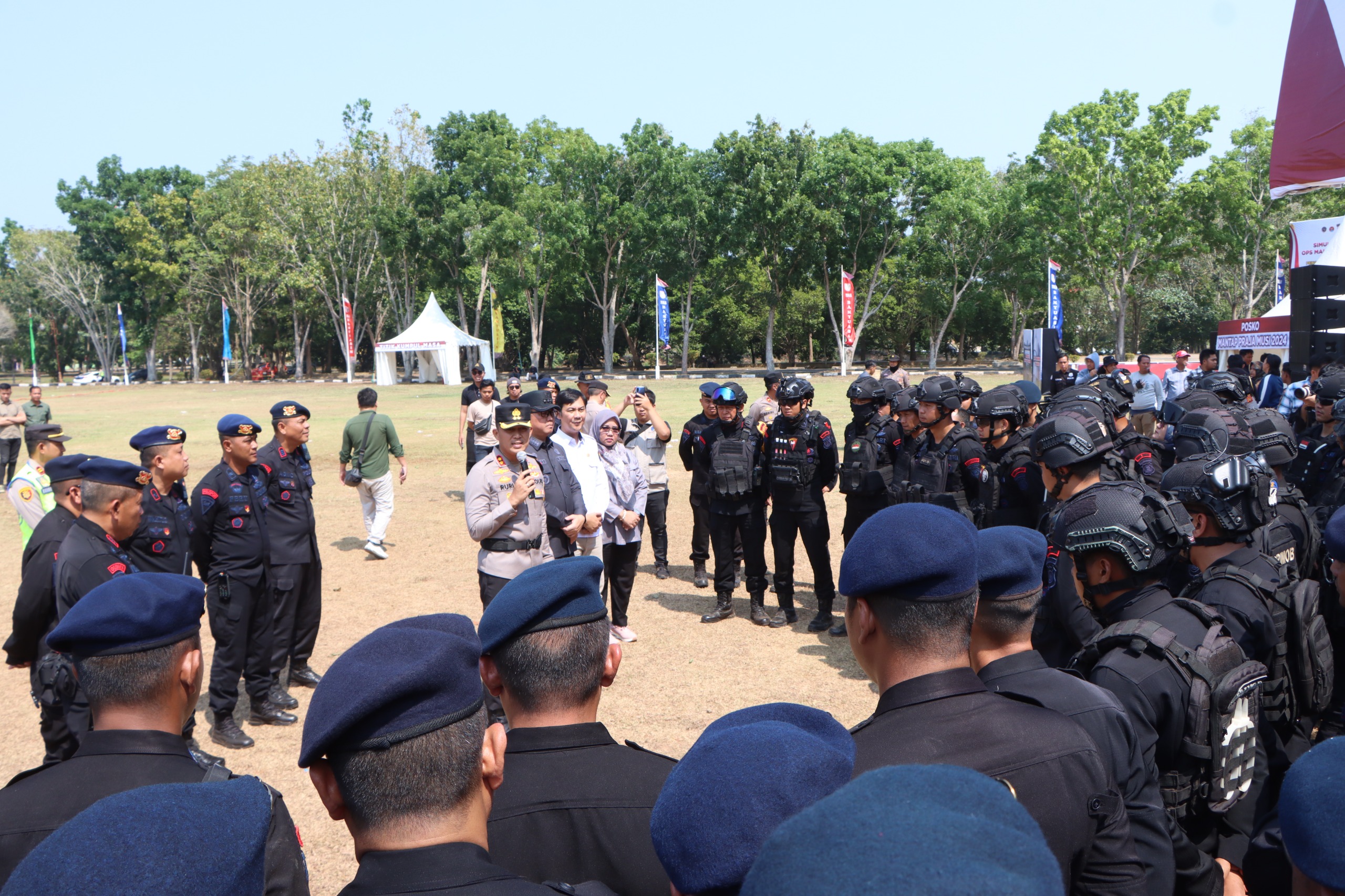 “Seluruh personel yang terlibat agar melakukan kegiatan – kegiatan premptive, preventif, penegak hukum dan rehabilitas, mulai dari metode pendekatan menggunakan kekuatan sesuai tahapan penggunaan kekuatan yang di atur dalam peraturan Kapolri,” ujar Kapolres AKBP Ruri Prastowo.