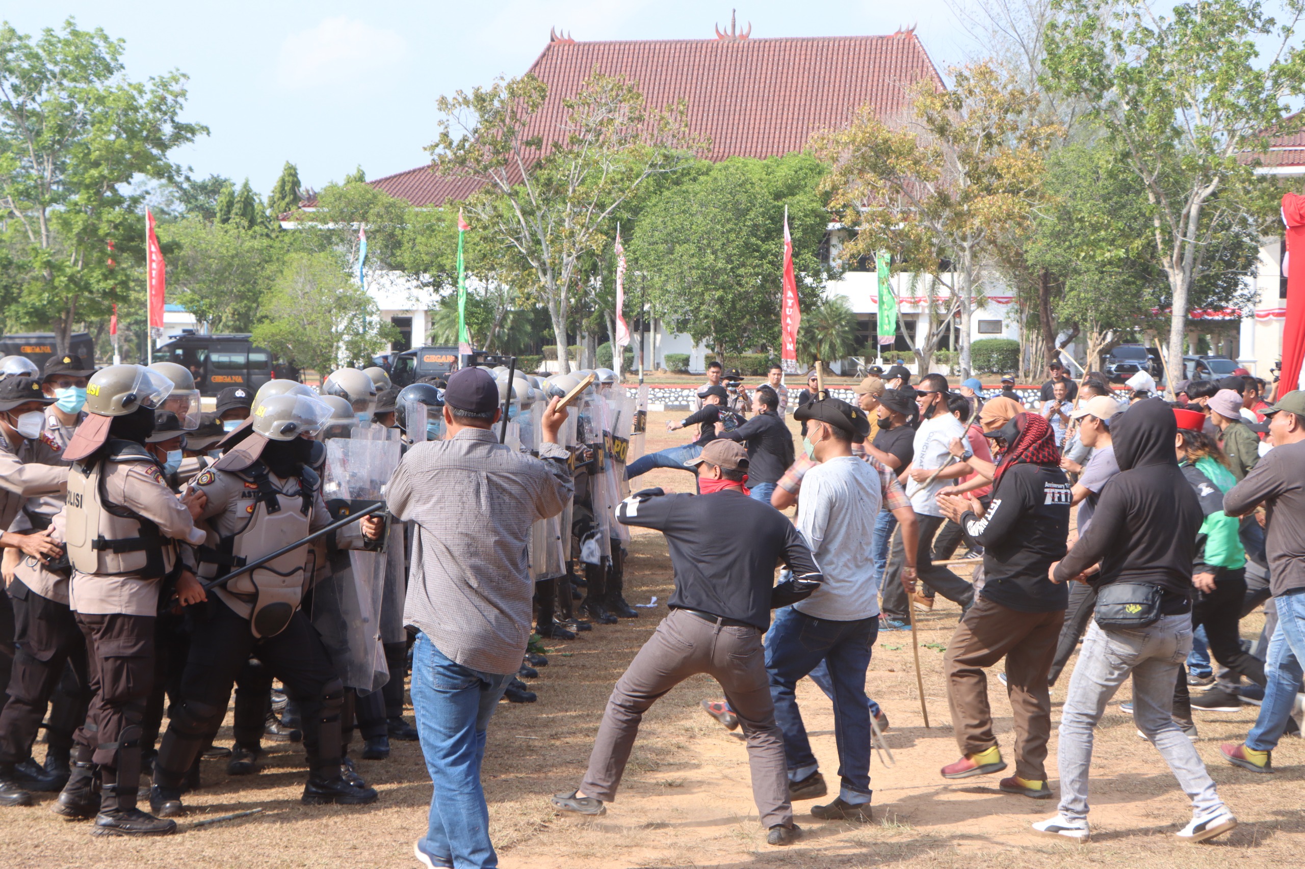 Situasi Merah, dimana PHH Brimob tiba di lokasi untuk melakukan lintas ganti dengan anggota Dalmas Lanjut, kompi Brimob ini dilengkapi dengan tongkat sodok untuk mendorong massa yang akan merebut peralatan petugas, dengan diturunkannya kompi PHH Brimob situasi dapat segera diatasi.