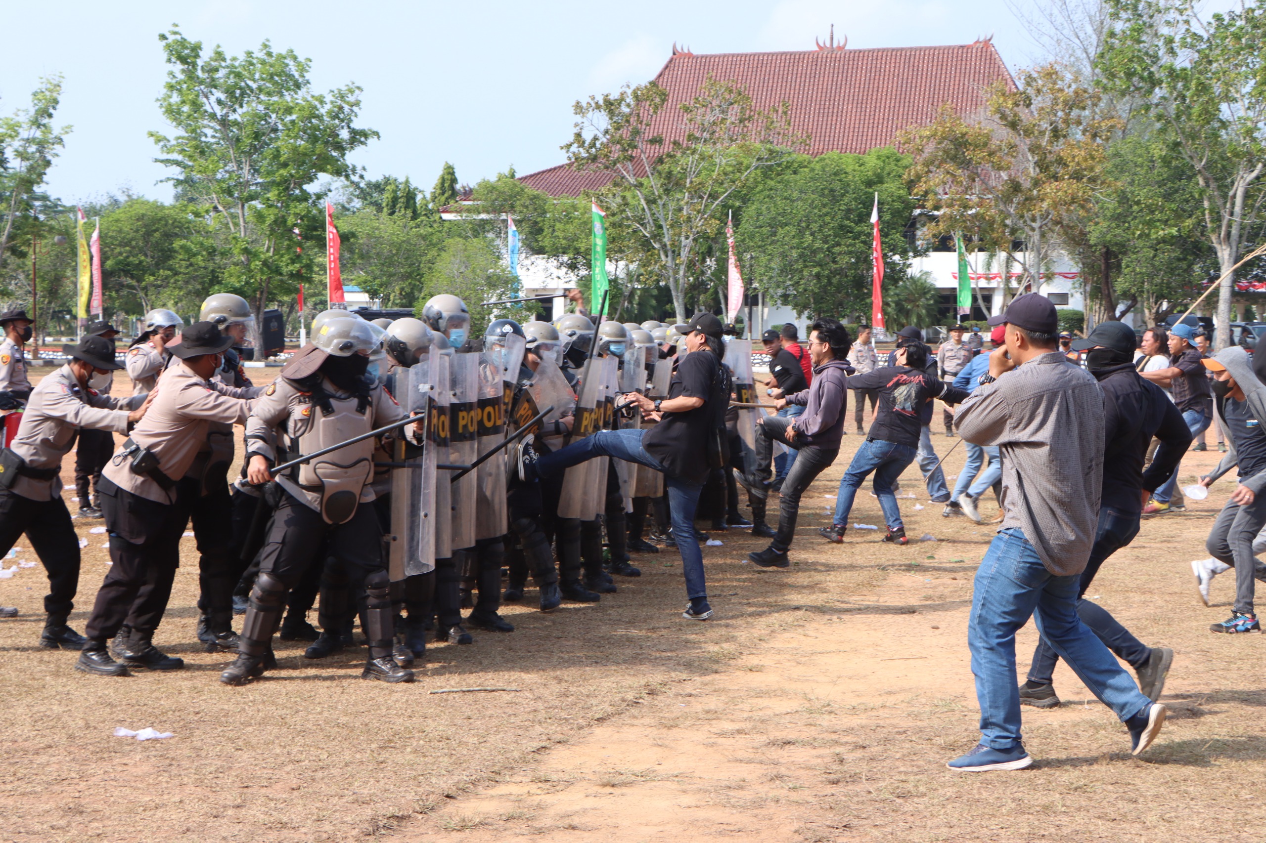 Kapolres Banyuasin AKBP Ruri Prastowo mengungkapkan, simulasi Sispamkota meliputi berbagai tahapan yakni kondisi tenang hingga eskalasi meningkat yakni tindakan anarkis dari para pengunjuk rasa.”Semua skenario ini sebagai bentuk kesiapsiagaan kita mengamankan jalannya Pilkada 2024,” ungkap Kapolres Ruri.