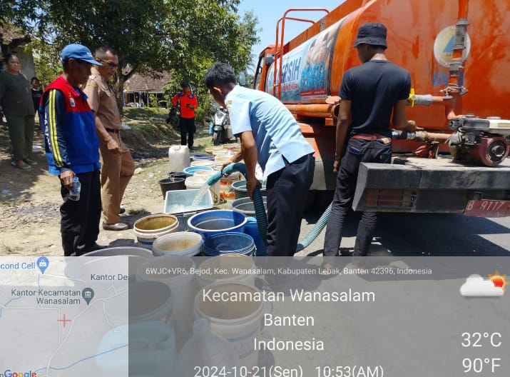 Di lain orang Salasatu petugas PDAM Cabang malingping pelayanan wanasalam, menerangkan saya bersama tim yang lainya hususnya kepada semua tim yang telah bergabung bekerjasama hususnya di kab. lebak yang peduli terhadap masyarakat yang terdampak kemarau panjang , akan terus kami upayakan semaksimal mungkin bentuk sosial dan peduli terhadap .warga yang terdampak kemarau panjang dan semaksimal mungkin saya bersama Tim .PDAM kacab, malingping pelayanan wanasalam insallah akan terus membantu, dan terimakasih kepada semua tim itansi terkait yang telah bersama – sama bekrjasama, sebagai bentuk sosial peduli terhadap masyarakat yang terdampak kemarau panjang Tandasnya ( yanto bastian )