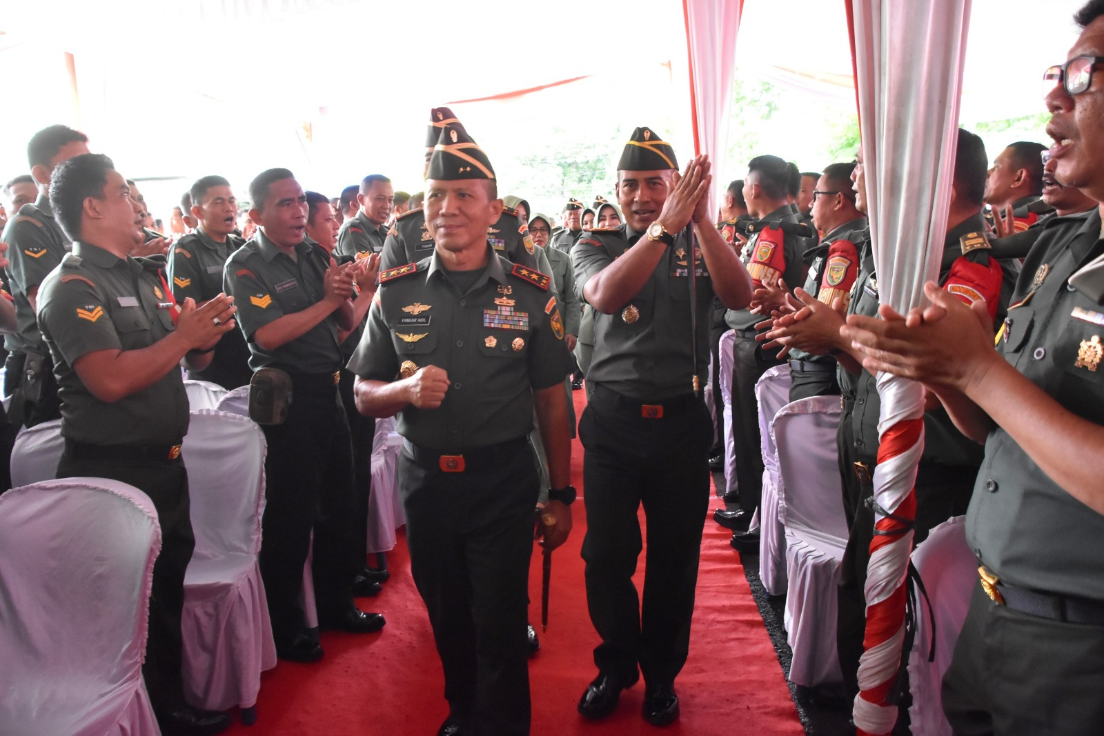 Kedatangan Pangdam II/Swj Mayjen TNI Yanuar Adil bersama rombongan langsung disambut oleh Komandan Kodim 0418/Palembang Kolonel Czi Arief Hidayat.M.han bersama Ketua Persit KCK Cabang XLII Kodim 0418/Palembang Vina Arief Hidayat