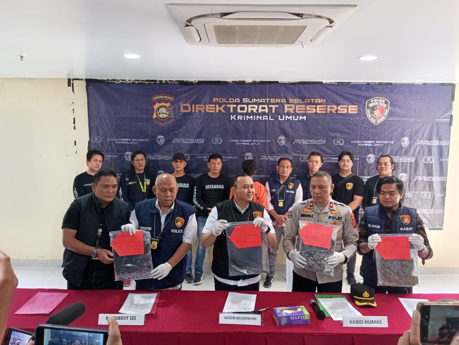 ” Satu tersangka sudah kita tangkap di kontrakannya, merupakan pelaku utama dalam tindak pidana tersebut,”ucap Wakil Direktur Ditreskrimum Polda Sumsel AKBP Indra Arya Yudha SIK didampingi Plt Kasubbid Penmas Bidhumas Polda Sumsel Kompol Menang,SH Kasubdit Jatanras AKBP Tri Wahyudi SH dan Kasat Reskrim Polres Ogan Ilir AKP M Ilham SIK saat jumpa pers, Selasa (08/10/2024).