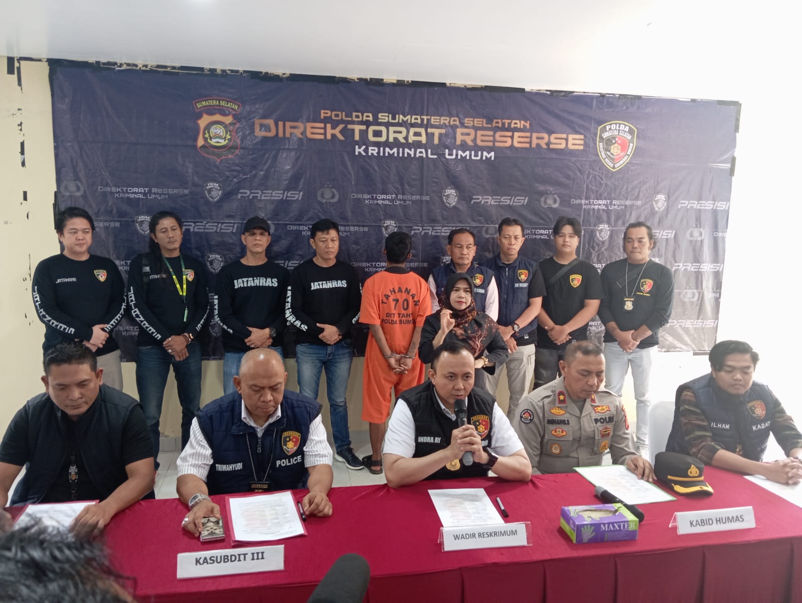 ” Satu tersangka sudah kita tangkap di kontrakannya, merupakan pelaku utama dalam tindak pidana tersebut,”ucap Wakil Direktur Ditreskrimum Polda Sumsel AKBP Indra Arya Yudha SIK didampingi Plt Kasubbid Penmas Bidhumas Polda Sumsel Kompol Menang,SH Kasubdit Jatanras AKBP Tri Wahyudi SH dan Kasat Reskrim Polres Ogan Ilir AKP M Ilham SIK saat jumpa pers, Selasa (08/10/2024).