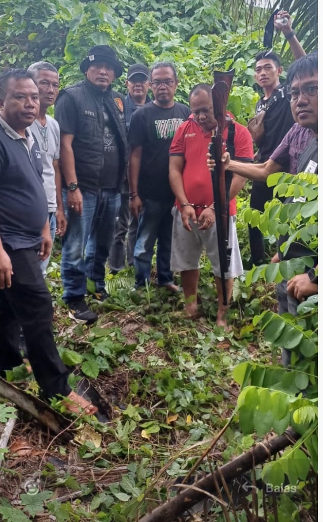 Kedua terduga pelaku masing-masing berinisial M.P. (44), seorang Pegawai Negeri Sipil (PNS), dan T.H. (16), seorang pelajar. Dari tangan mereka, petugas turut mengamankan barang bukti berupa satu pucuk senapan angin, satu kantong amunisi, dan sepasang sepatu bot yang diduga digunakan saat kejadian.