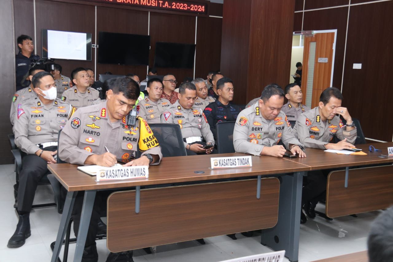 Tim yang diketuai Karojianstra Sops Polri Brigjen Marsudianto menggelar pertemuan dengan perangkat operasi ketupat Musi polda Sumsel dan jajaran diruang Pusat Pengendalian Operasi (Pusdalops), Mapolda Sumsel Jumat (5/4/2024)