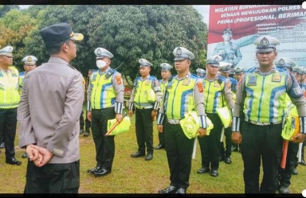 yang tanpa berseragam seperti Intel Res narkoba reserse kriminal rekan-rekan rompinya di sini warna hitam masih untung ini rekan-rekan menggunakan kemeja putih sehingga masih kelihatan lengannya putih rekan-rekan bisa bayangkan kalau malam hari rekan-rekan menggunakan kemeja celana jeans warna gelap rompinya hitam juga berdiri di tengah jalan di pinggir jalan kelihatan karenanya rekan-rekan sisihkanlah sedikit rezeki belilah senter kedip masing-masing perorangan beli lah senter nanti masing-masing pada Soc kita diskusi kita kalkulasikan berapa titik spot-spot yang sekiranya rawan terjadi kemacetan floating yang sudah di atur, ada berapa titik minimal di tiap titik itu personil yang soc berseragam pakai rompi hitam ada lagi minimal satu saja senter kedip relevansinya nanti jika terjadi kemacetan menjaga ekor mengalah mengarahkan kendaraan yang ingin mengambil kanan minimal bisa diarahkan menggunakan senter.
