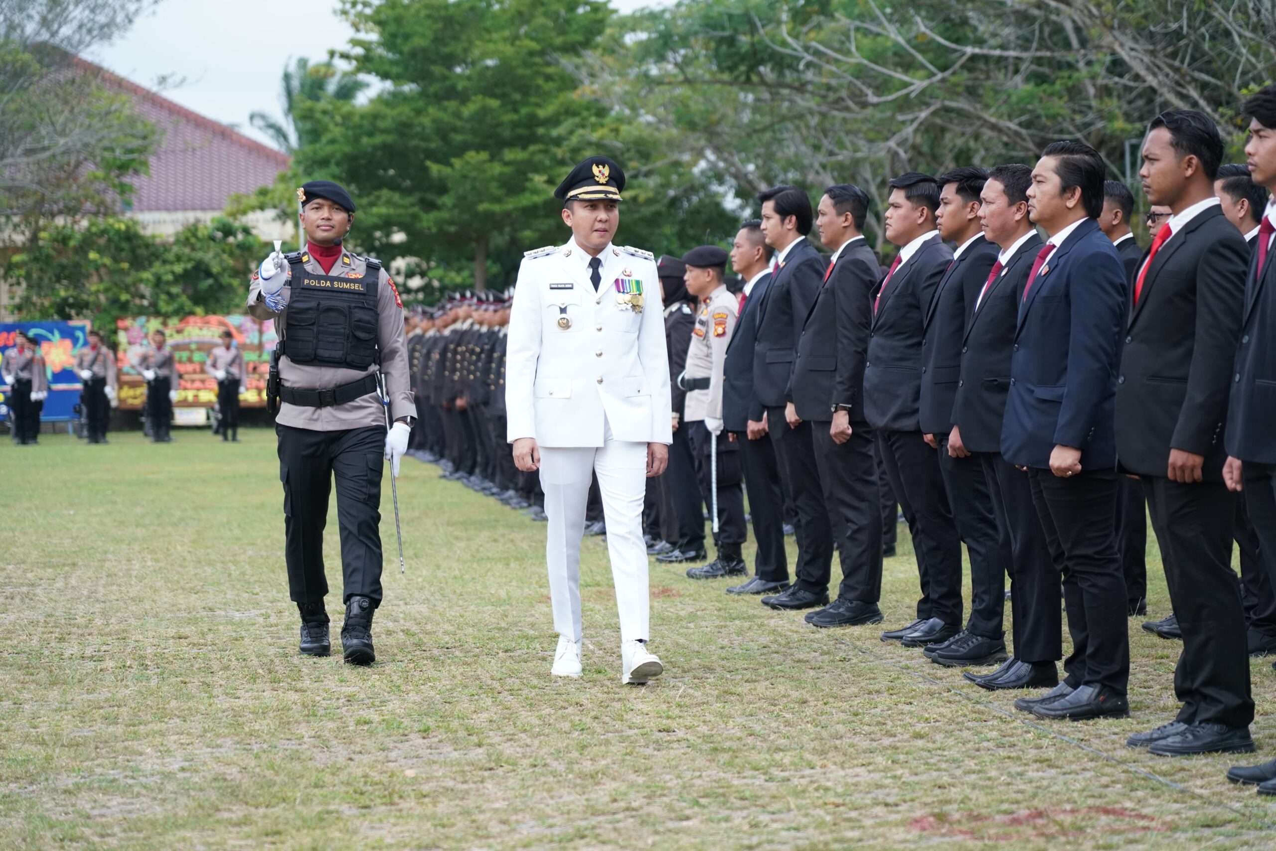 Bupati Ogan Ilir, Panca Wijaya Akbar, SH., M.Si, bertindak sebagai Inspektur Upacara, sedangkan Komandan Upacara diemban oleh IPTU Dimas Imam Santoso, S.Psi. Kegiatan ini turut dihadiri oleh Waka Polres Ogan Ilir Kompol Helmi Ardiansyah, SH., MH mewakili Kapolres, Dandim 0402 OKI/OI Letkol Inf Yontri Bhakti, Ketua DPRD, Kajari, Ketua Pengadilan, Kakan Kemenag, serta jajaran pimpinan instansi dan perbankan, tokoh masyarakat, tokoh agama, mahasiswa Unsri, dan para purnawirawan Polri.