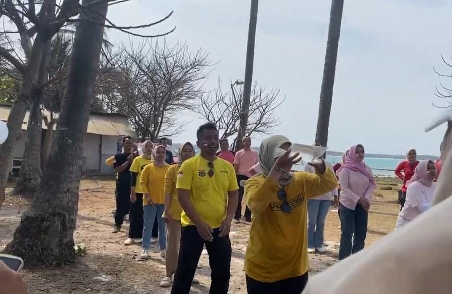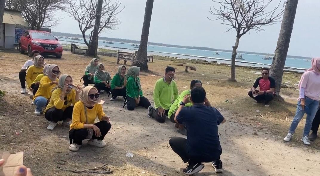UPTD Puskesmas Parungsari Meriahkan Hut Ri ke- 79 Dengan Lomba Rakyat Balon Estapet,Tepung Estapet ,Air Estapet ,balon Air di adakan di Di Pantai Tanjung. Wilayah Wanasalam.Lebak