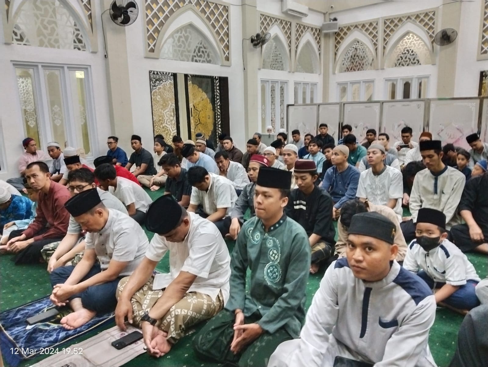 Sos, saat menyampaikan tausiyahnya pada malam ke-enam Ramadhan 1445 Hijrah Pada sholat tarawih di Masjid Al-Aman Komplek Pakri Jalan Jenderal Bambang Utoyo Palembang Sabtu 16 Maret 2024 Malam