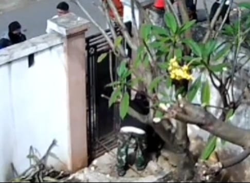 Sejurus kemudian si pemegang tongkat terlihat menyuruh salah satu seseorang yang bercelana doreng tersebut meloncat pagar  dan membobol kunci berkali kali dihantam dengan palu, setelah kunci pagar berhasil terlepas lalu mereka masuk bersama seorang ibu berpakaian jilbab nampak dikawal beberapa orang.