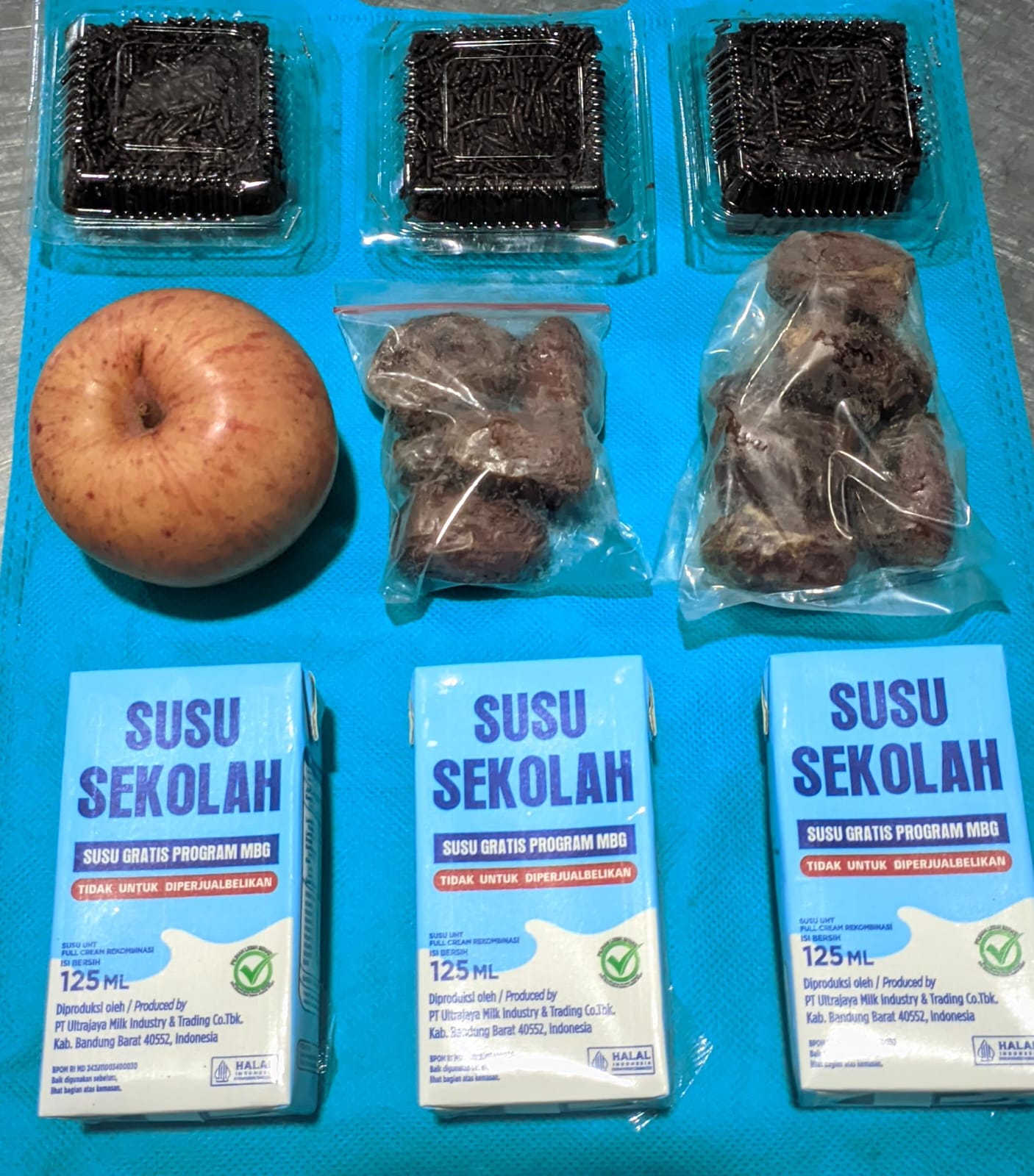 Berdasarkan informasi yang beredar, menu MBG yang dibagikan pada hari itu terdiri dari empat jenis makanan, yaitu satu butir telur, susu steril, kurma, dan roti. Namun, roti yang diterima pihak sekolah diduga telah melewati masa kedaluwarsa karena tidak terdapat label tanggal kedaluwarsa pada kemasannya.