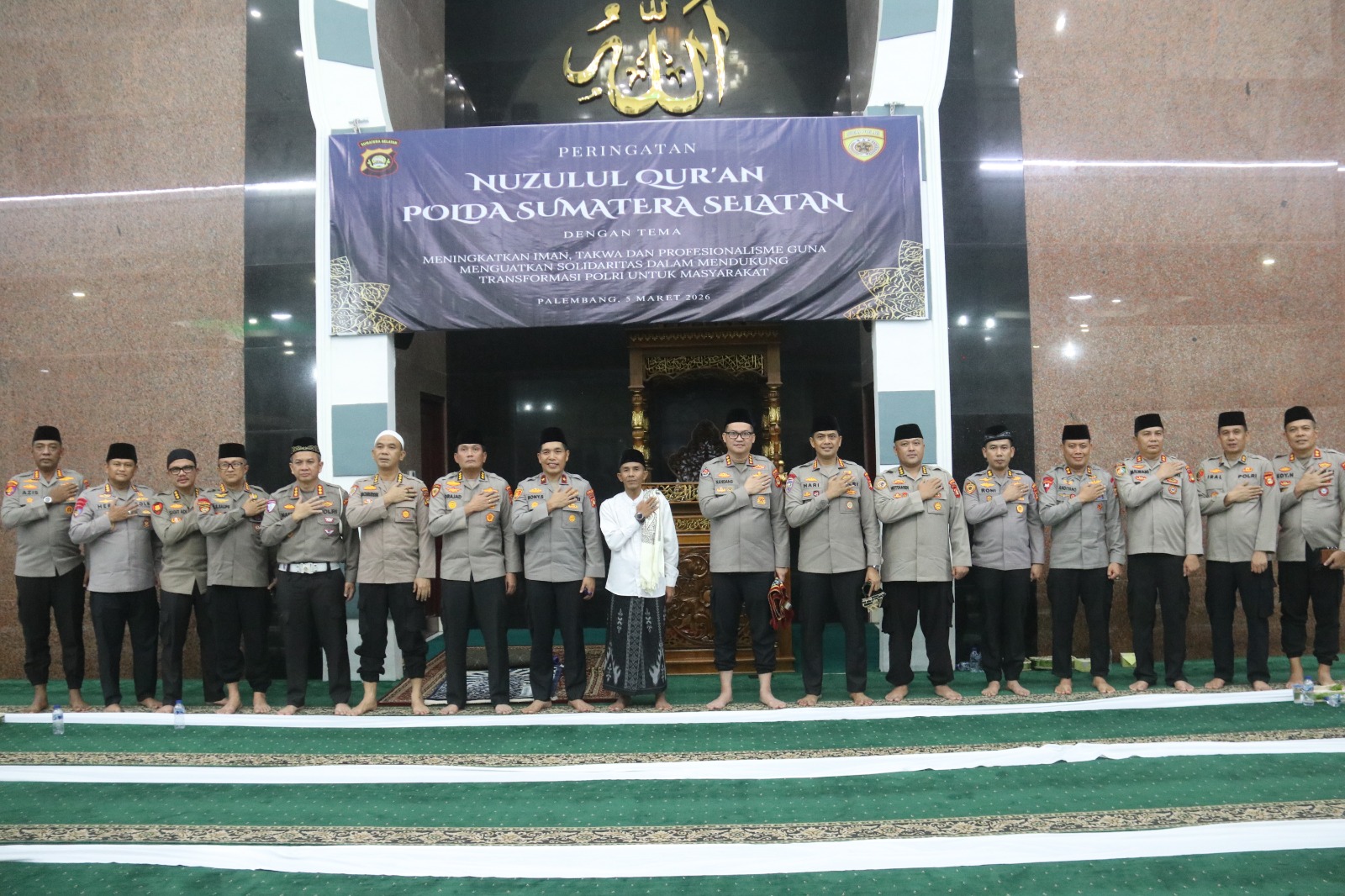 Liputanabn.com | PALEMBANG – Wakapolda Sumatera Selatan Rony Samtana mengingatkan pentingnya integritas dan moral aparat saat memimpin peringatan Nuzulul Qur’an 1447 Hijriah di Masjid Assa’adah Mapolda Sumsel, Kamis malam (5/3/2026).
